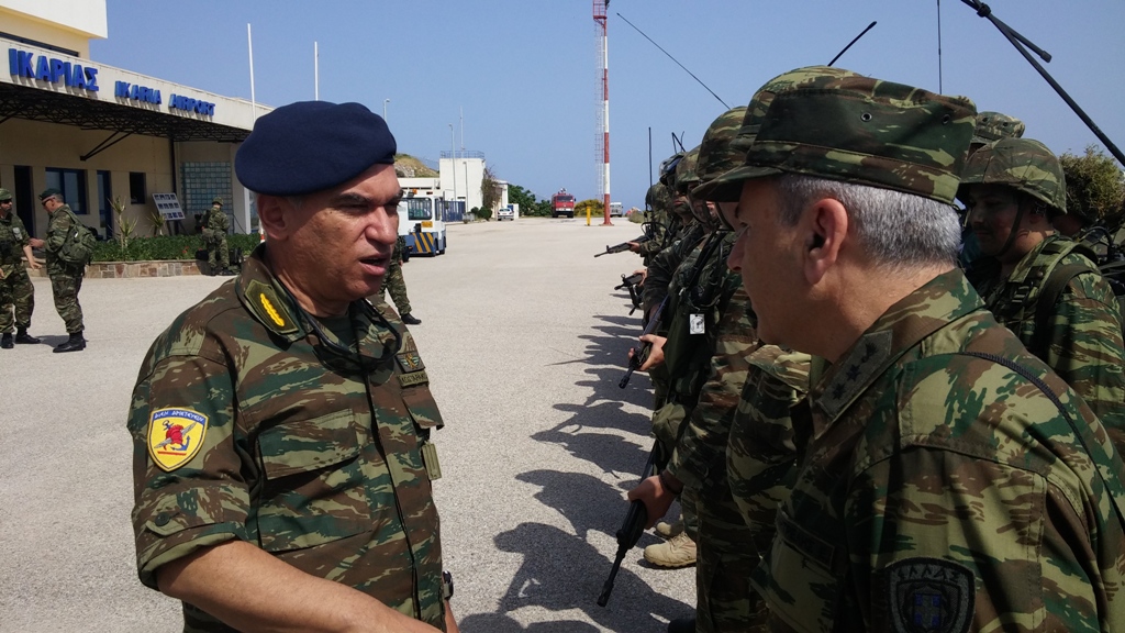 Θέλω να συγχαρώ όσους συμμετείχαν σε αυτή την Άσκηση. Είχα τη χαρά σήμερα τα ξημερώματα να βρεθώ μαζί με τον κ. Αρχηγό στη Λήμνο, τη Χίο και τη Σκύρο, όπου έγιναν οι ρίψεις των αλεξιπτωτιστών των ΕΤΑ και εν συνεχεία προχωρήσαμε στο δεύτερο μέρος της επιχείρησης, μαζί με την Ζ' ΜΑΚ των Ειδικών Δυνάμεων, στην ανακατάληψη του αεροδρομίου της Ικαρίας.