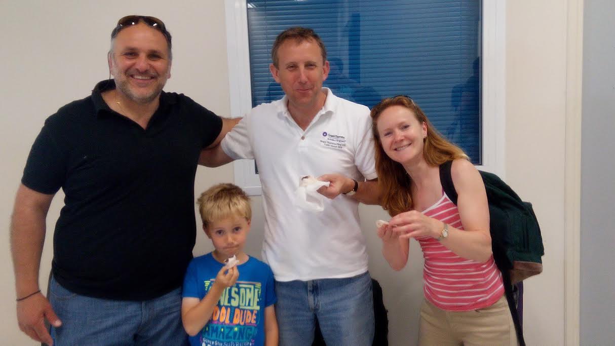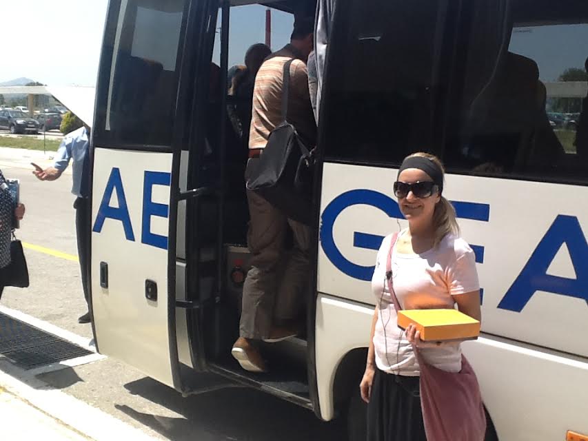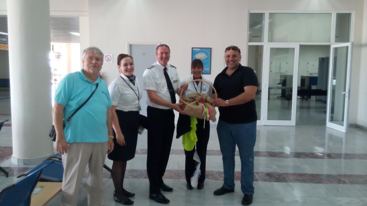 Ο Κος Σφενδύλης και τα μέλη της ΑΜΚΕ καλωσόρισαν τους επισκέπτες και το πλήρωμα των πτήσεων και τους προσέφεραν γλυκά και δώρα.