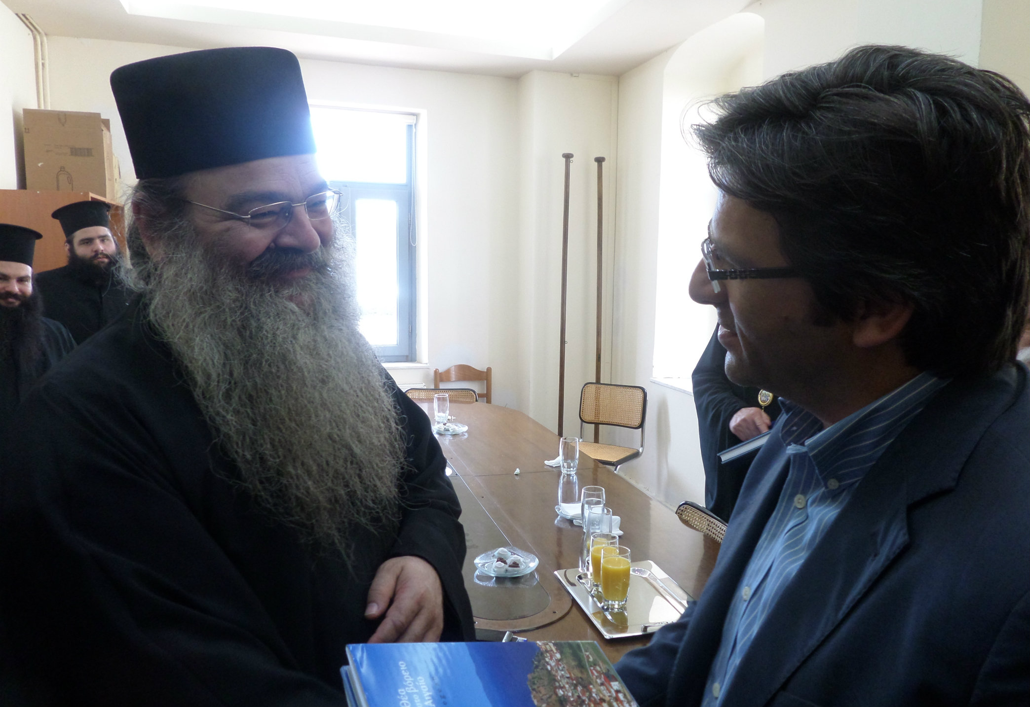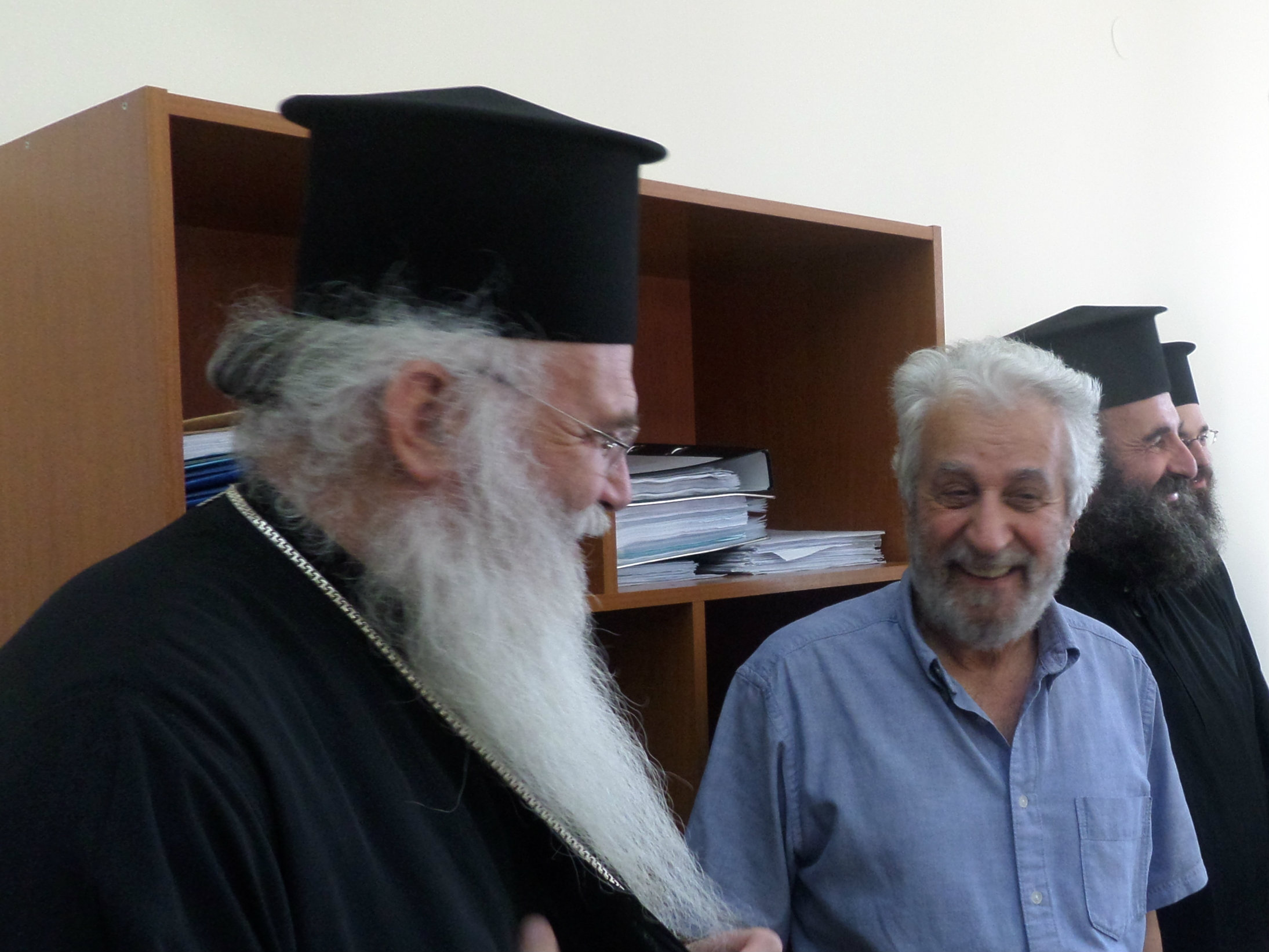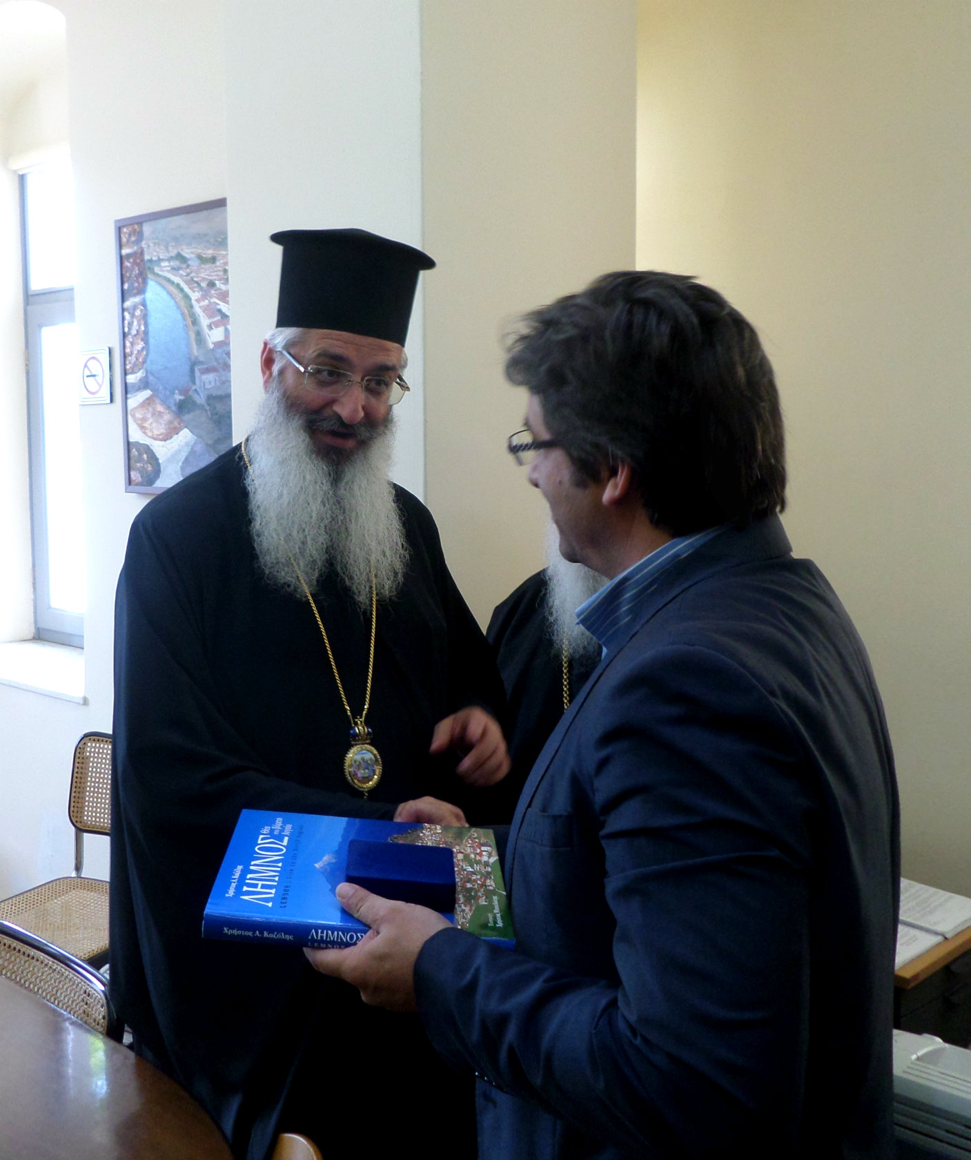 Κατά την επίσκεψή τους στο Δημαρχείο, συνοδεύονταν από τον Πανοσιολογιότατο Αρχιμανδρίτη πατέρα Φιλόθεο Κουτλουμουσιανό της Μονής Κουτλουμουσίου, ο οποίος και μετέφερε στο νησί μας το τεμάχιο του Τιμίου Σταυρού, καθώς επίσης και τους Πανοσιολογιότατους Αρχιμανδρίτες, πατέρα Δημήτριο Τζιαφά και πατέρα Τιμόθεο Αγγελή, ιερείς της Ιεράς Μητροπόλεως Λήμνου και Αγίου Ευστρατίου και τους διακόνους Ορέστη Τσάνταλη και Μερκούρη Κουρτέλη.