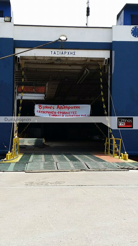 Η αλήθεια είναι πως οι ναυτεργάτες παραμένουν απλήρωτοι πάνω από 8 μήνες και για το λόγο αυτό, μετά και την έκπτωση της ΝΕΛ από τη γραμμή Λαύριο – Άγιος Ευστράτιος- Λήμνος – Καβάλα οι εργαζόμενοι της ναυτιλιακής τοποθέτησαν πανό στον καταπέλτη του πλοίου το οποίο αναφέρει: «8 μήνες απλήρωτοι. Κυβέρνηση – Εφοπλιστές Συμμαχία εναντίον μας».
