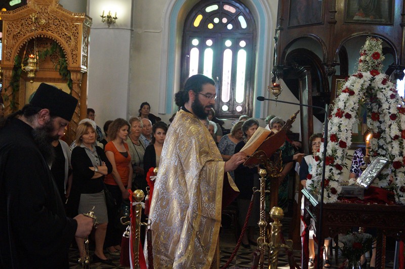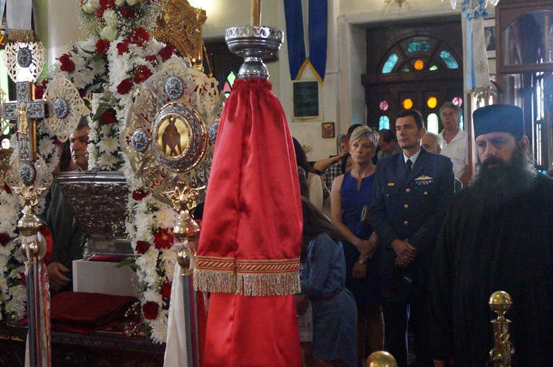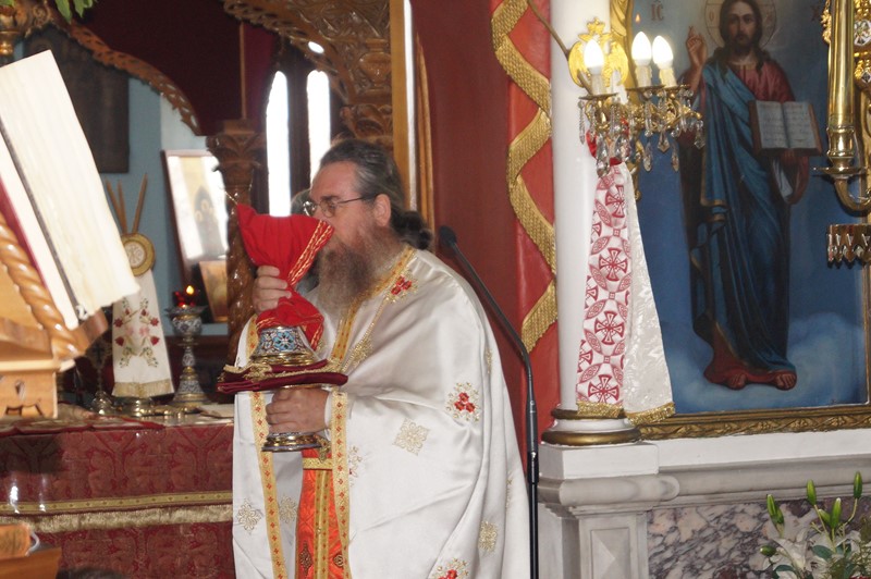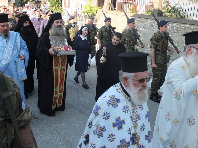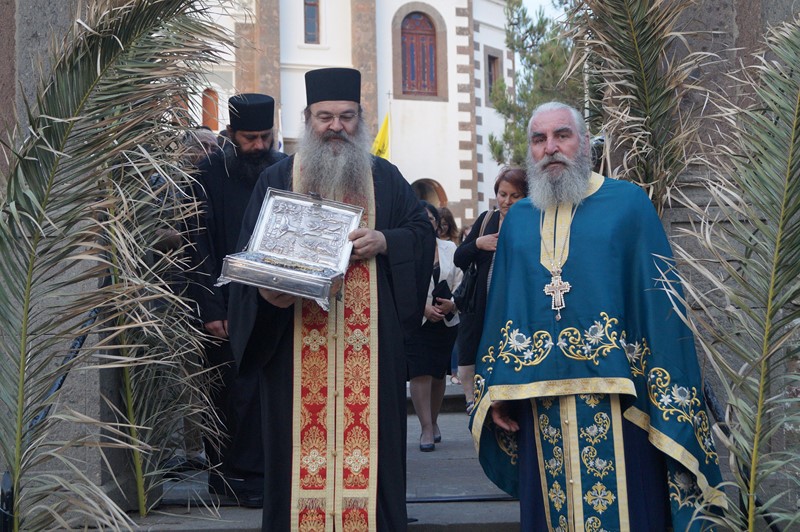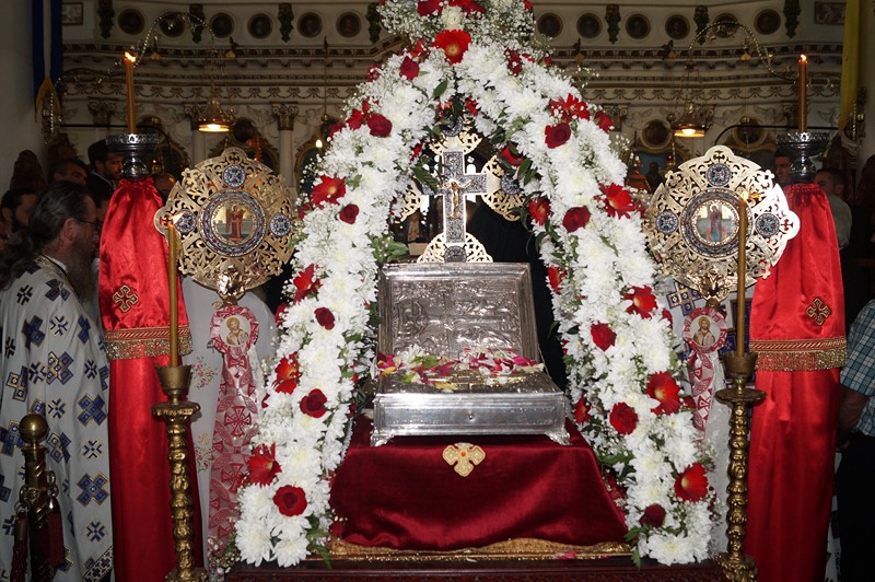 Το Τίμιο Ξύλο συνόδευαν ο Ιερομόναχος Φιλόθεος και ο Μοναχός Κύριλλος, ενώ τιμές αποδόθηκαν από την πολιτική και στρατιωτική ηγεσία του τόπου, την τοπική Εκκλησία και τον ευσεβή λαό. Μετά την υποδοχή, ακολούθησε πομπή μέσα από την πόλη μέχρι τον Ιερό Ναό Ευαγγελισμού της Θεοτόκου, όπου τελέσθηκε ο Εσπερινός.