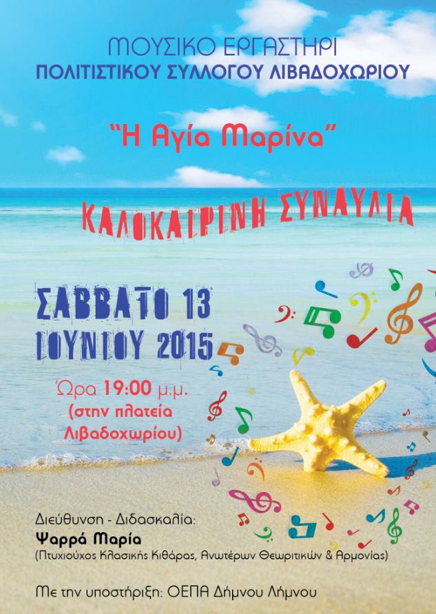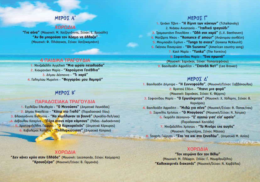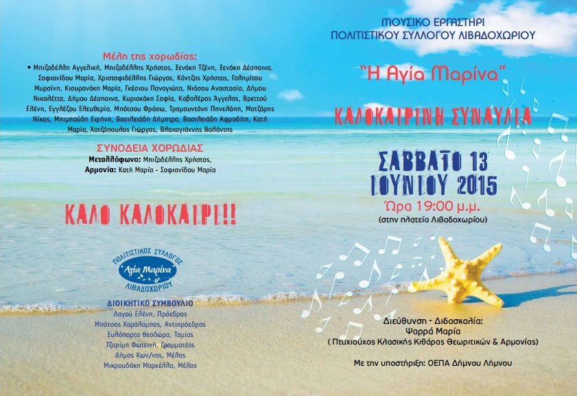 Η καλοκαιρινή συναυλία θα αποτελείται από 4 μέρη, προσπαθώντας να καλύψουν μια μεγάλη γκάμα τραγουδιών. Το ραντεβού δίνεται για το Σάββατο 13 Ιουνίου στις 7 το απόγευμα, στην πλατεία του Λιβαδοχωρίου.