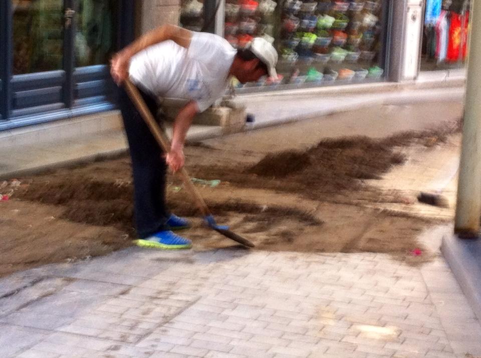 Όπως πληροφορηθήκαμε, για την απομάκρυνση του μεγαλύτερου όγκου χώματος, επιστρατεύτηκε η σκούπα του Δήμου δίνοντας αμέσως μετά τη «σκυτάλη» στους υπαλλήλους καθαριότητας για να ολοκληρώσουν την εργασία.