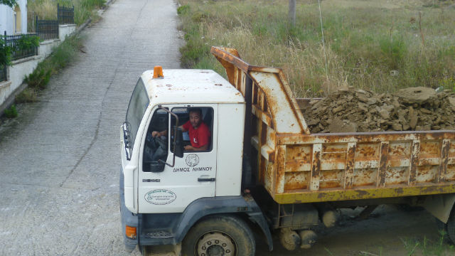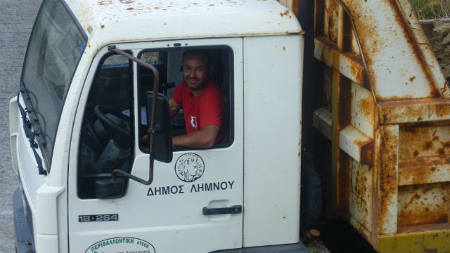 Με έκπληξη όμως διαπιστώσαμε ότι ο οδηγός του ενός από τα δύο φορτηγά που είχαν επιστρατευτεί, δεν ήταν υπάλληλος του Δήμου, αλλά ο Αντιδήμαρχος της περιοχής Γιώργος Σακαρίκος.