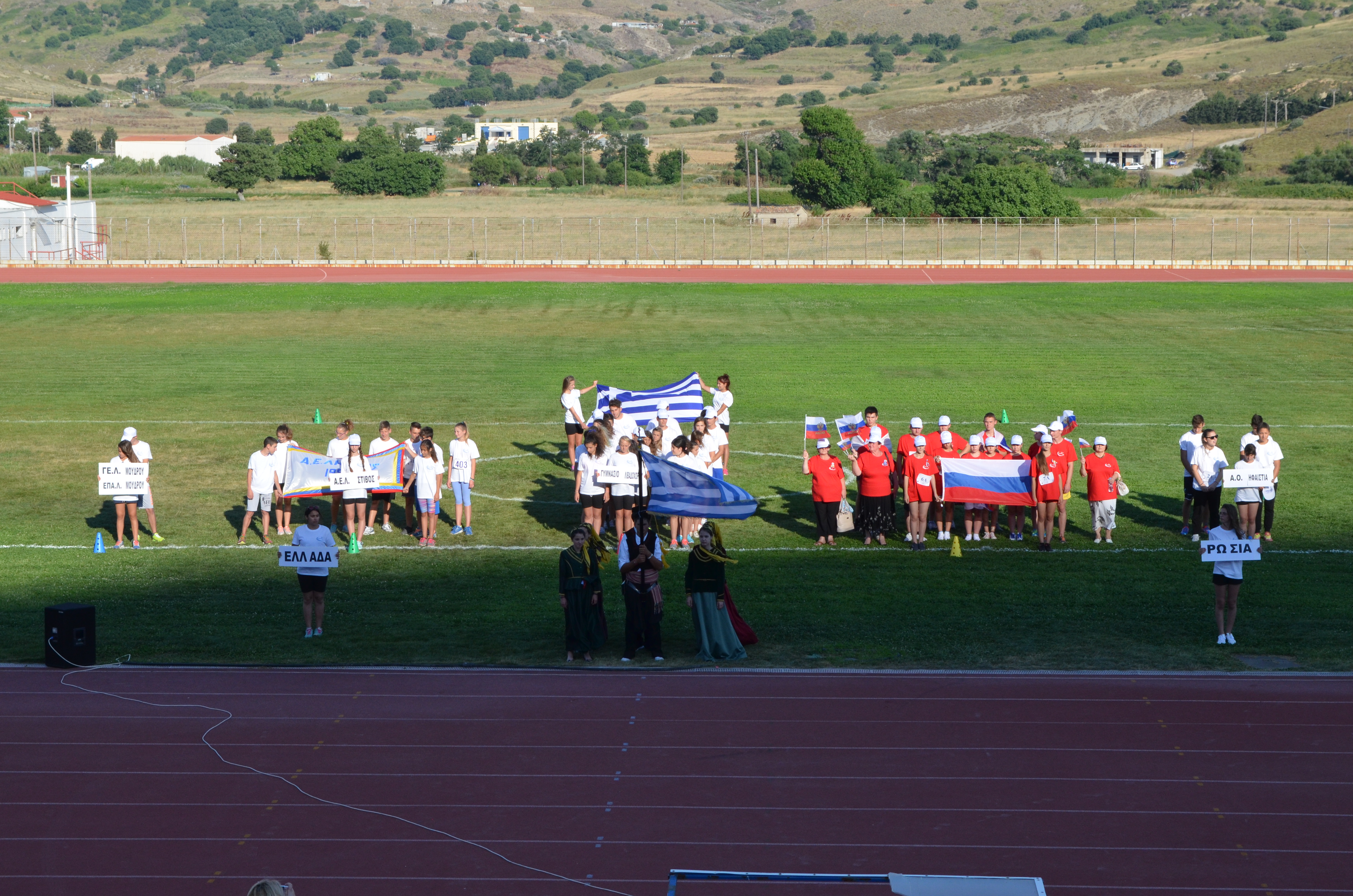 Στα πέντε αθλήματα του Αρχαίου Πεντάθλου (άλμα, δρόμο, σφαίρα, ακόντιο και πάλη), που την τελετή έναρξης επιμελήθηκαν η Μαρία Παμούκη (σκηνοθέτης) και η Μαριέλα Νέστορα (χορογράφος) σε μουσική του Μανόλη Παπαδάκη, συμμετείχαν συνολικά 50 αθλητές αγόρια και κορίτσια. Εκτός από μαθητές από το Γυμνάσιο Λιβαδοχωρίου, συμμετείχαν επίσης το τμήμα ΑΕΛ ΣΤΙΒΟΣ, ο Αθλητικός Όμιλος "Ηφαιστία", το ΓΕΛ και το ΕΠΑΛ ΜΟΥΔΡΟΥ καθώς και αποστολή μαθητών από την Ρωσία, αποσπώντας τον ενθουσιασμό και τα χειροκροτήματα των θεατών.
