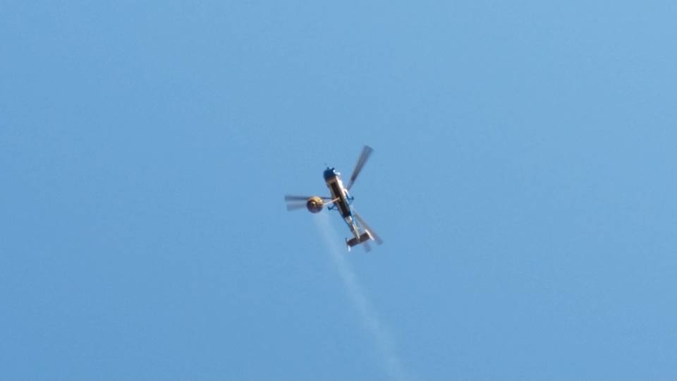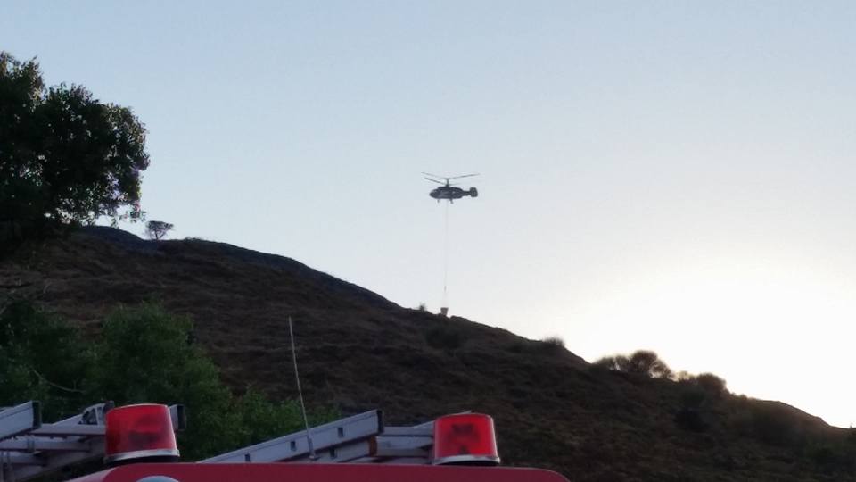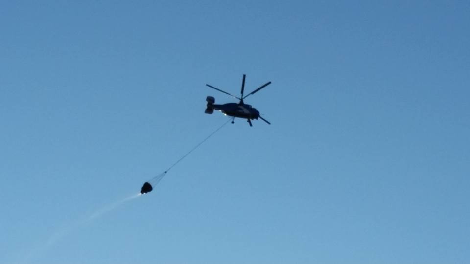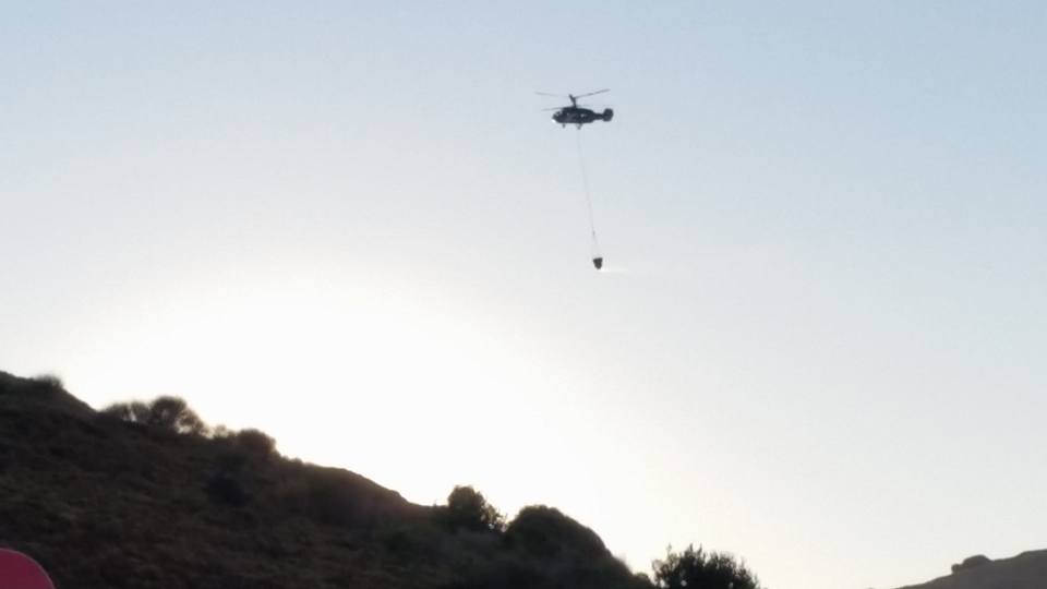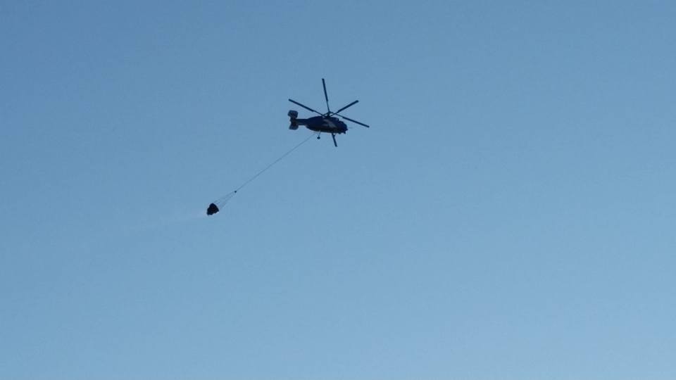 Εντωμεταξύ, μετά από εντολή του Διοικητή της Υπηρεσίας στις προσπάθειες κατάσβεσης συνέδραμε και ελικόπτερο, πραγματοποιώντας ρίψεις νερού, αν και η φωτιά εκείνη την ώρα βρίσκονταν υπό περιορισμό.