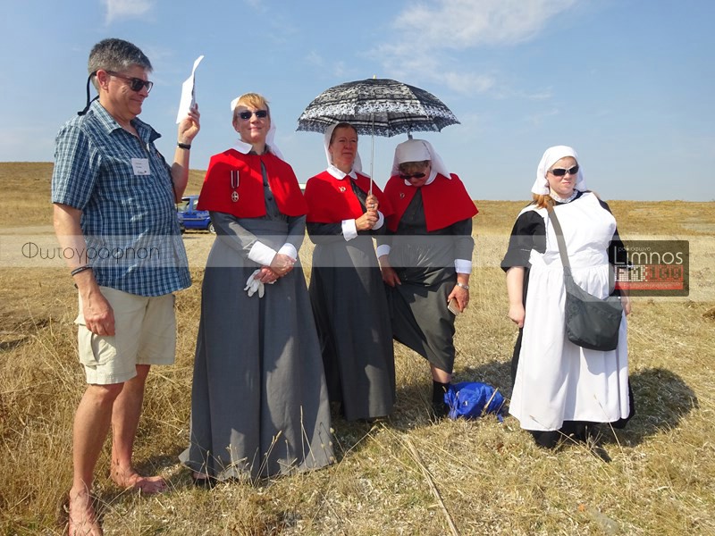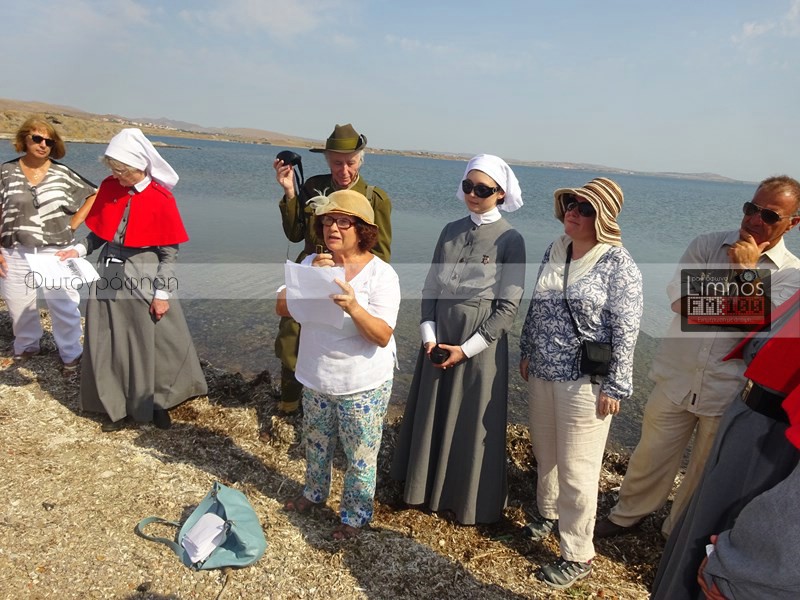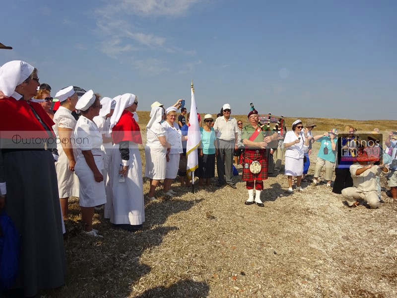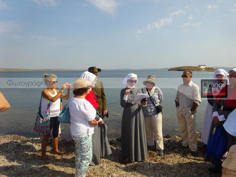 "100 χρόνια μετά την έλευση του σώματος των αυστραλών νοσοκόμων, που ήρθε στη Λήμνο για να περιθάλψει έναν τεράστιο αριθμό τραυματιών του Α' Παγκοσμίου Πολέμου, νοσοκόμες από την Αυστραλία και τη Νέα Ζηλανδία, πραγματοποιώντας μία επίσκεψη τιμής και μνήμης φωτογραφήθηκαν σήμερα στην περιοχή κοντά στο νησάκι του Αγ. Νικολάου στην Πούντα.