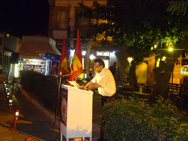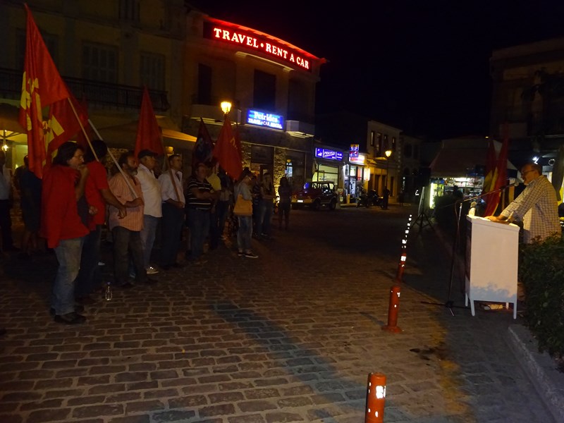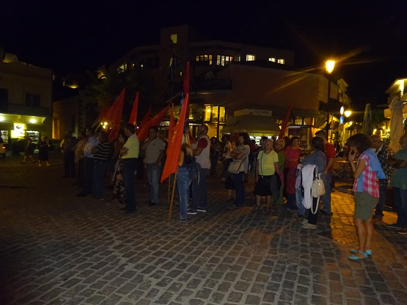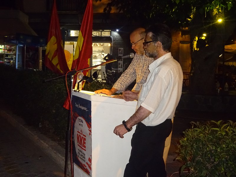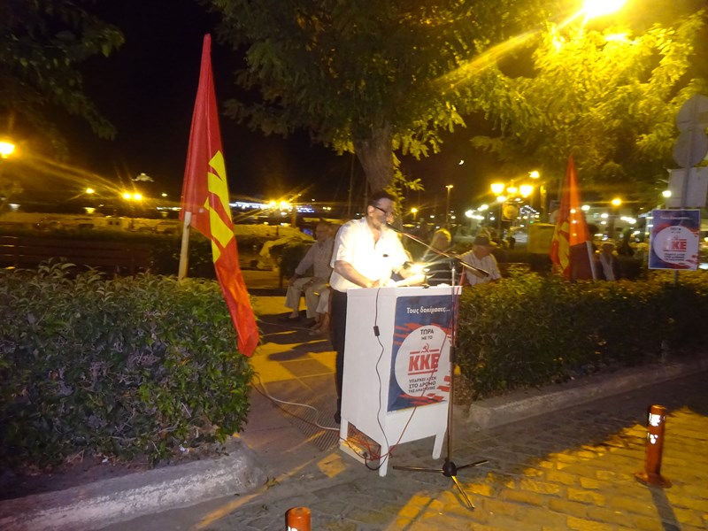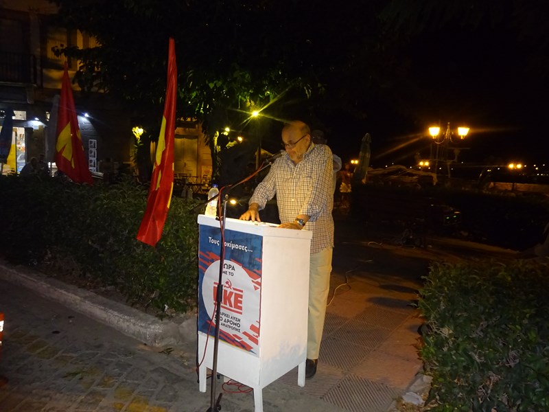 Ο Βαγγέλης Αγάς στην ομιλία του κάλεσε το λαό να γυρίσει την πλάτη στα κόμματα που ψήφισαν το τρίτο μνημόνιο, κάνοντας λόγο για αντιλαϊκά και εξοντωτικά μέτρα, τα οποία θα εφαρμοστούν από την επομένη των εκλογών.