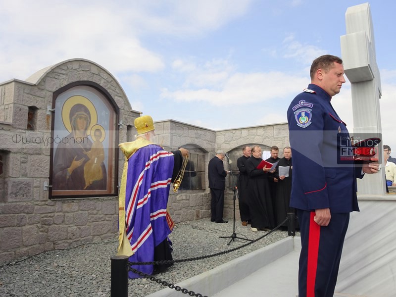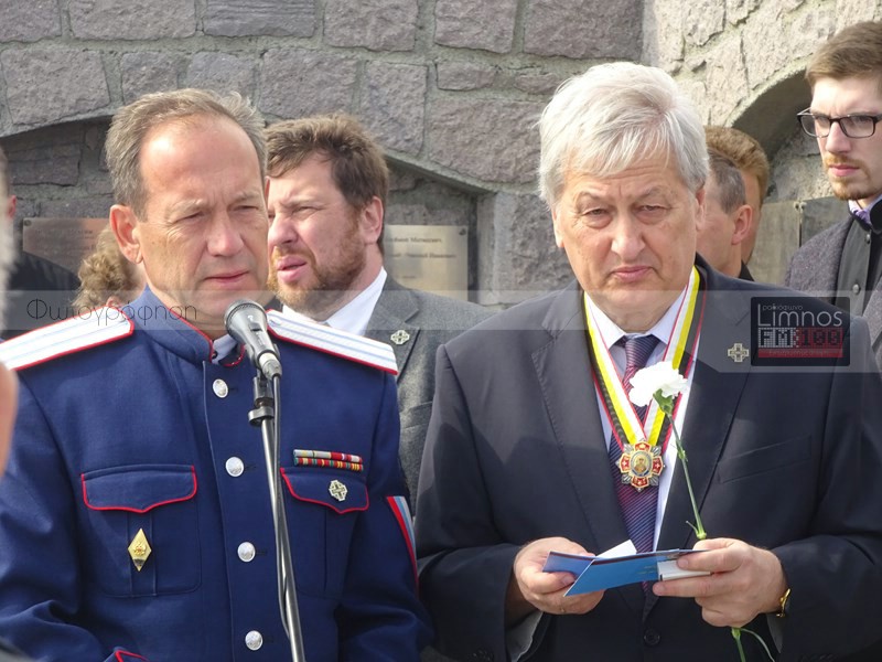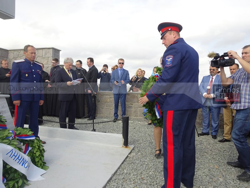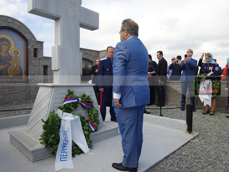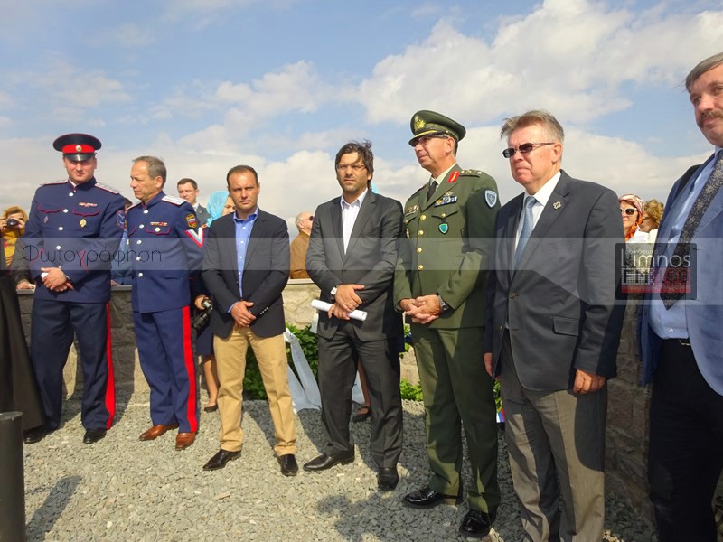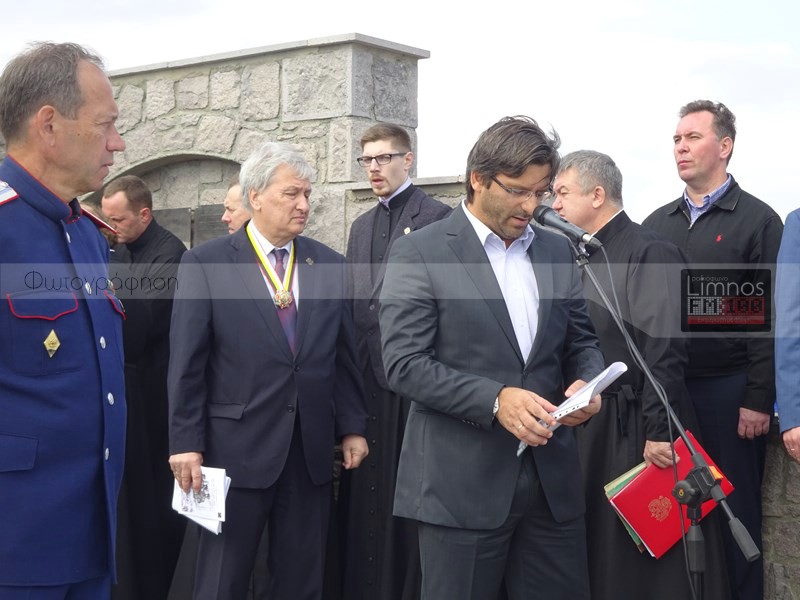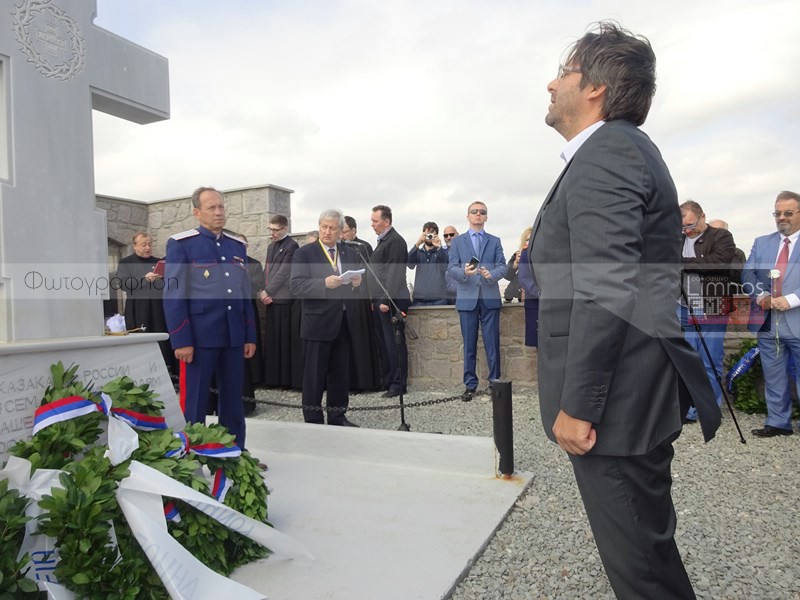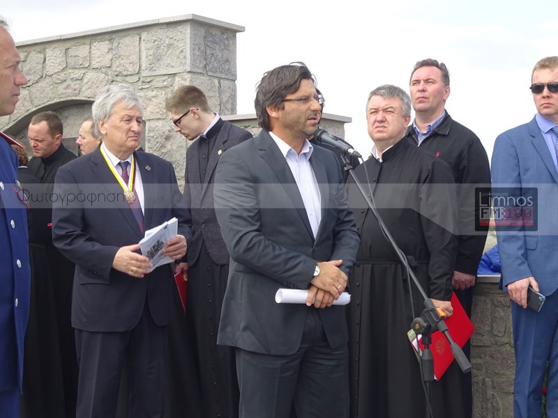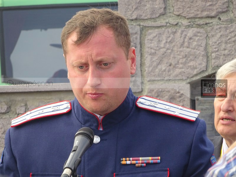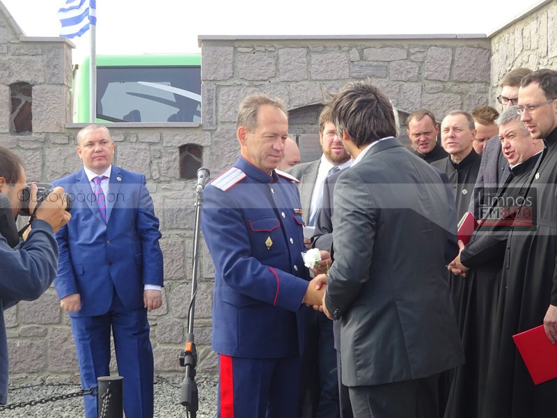 Ο Δήμαρχος Λήμνου κ. Δημήτρης Μαρινάκης στην ομιλία του τόνισε τη μεγάλη τιμή που αποτίεται κάθε χρόνο στους Ρώσους που ετάφησαν στη Λήμνο: «Η παρουσία σας εδώ και φέτος με μία πολυμελή αντιπροσωπεία, αποτελούμενη από σημαντικές προσωπικότητες της Εκκλησίας και του δημόσιου βίου, αποδεικνύει την μεγάλη τιμή που αποδίδετε στους προγόνους σας», ανέφερε ο κ. Μαρινάκης προσθέτοντας ότι «η ιστορία των Κοζάκων που ήρθαν και έζησαν στα μέρη αυτά αποτελεί αναπόσπαστο κομμάτι της ιστορίας της Λήμνου, όπως και όλα τα ιστορικά γεγονότα τα οποία συνέδεσαν το νησί μας με την πατρίδα σας τη Ρωσία».