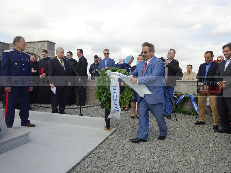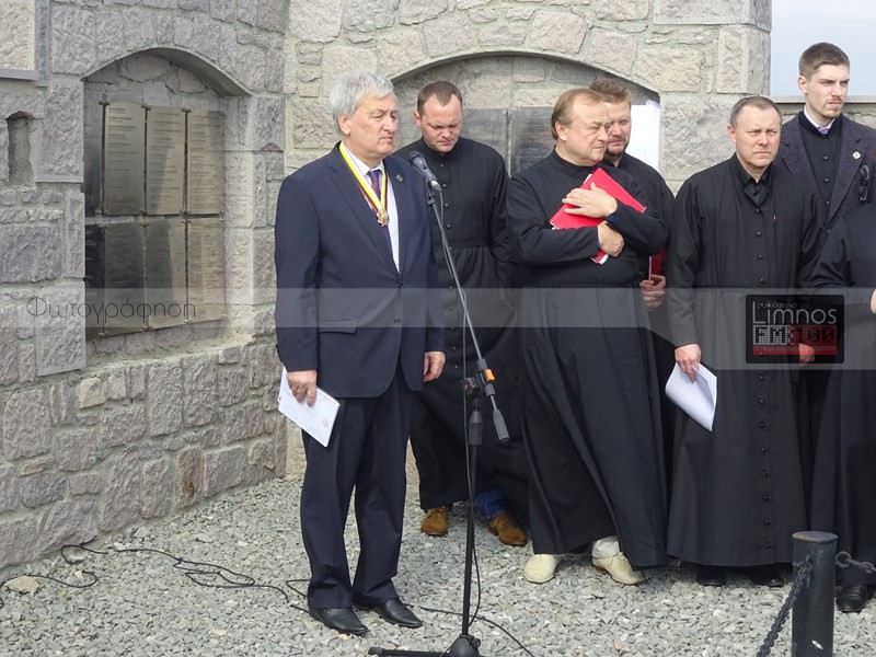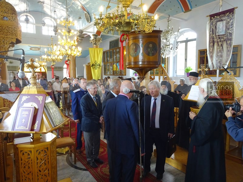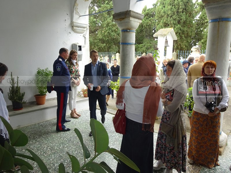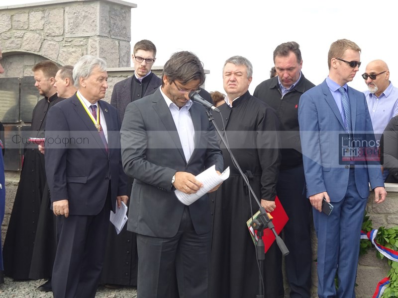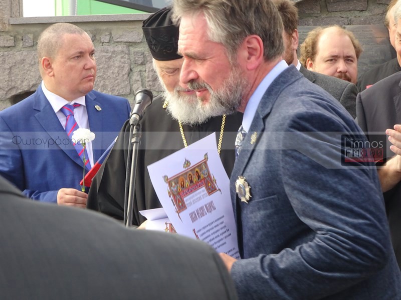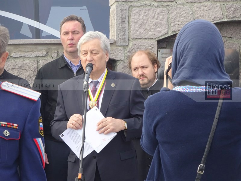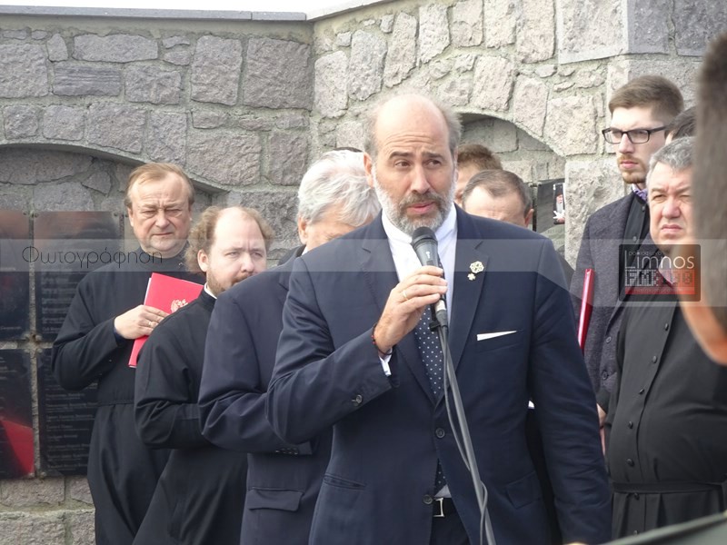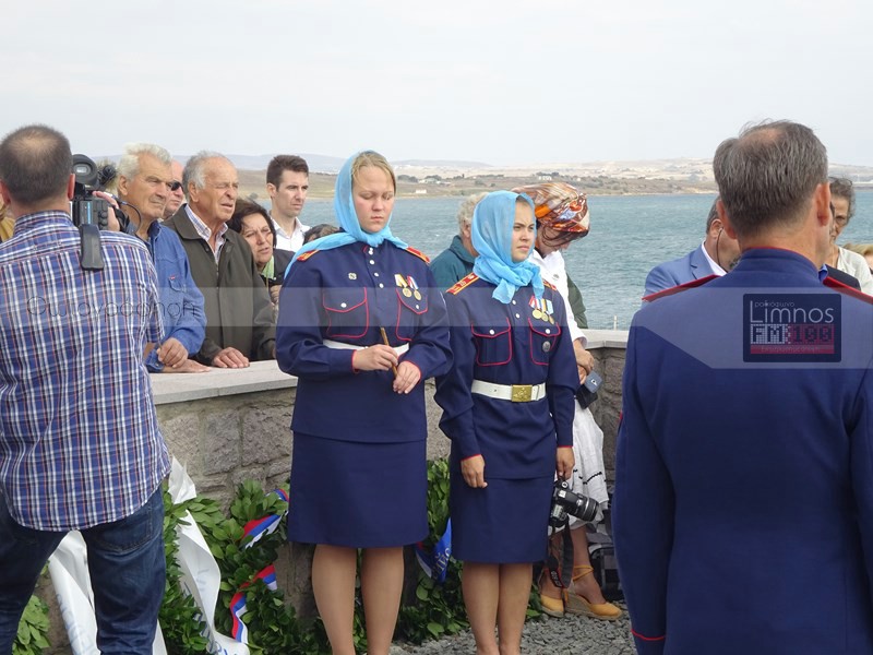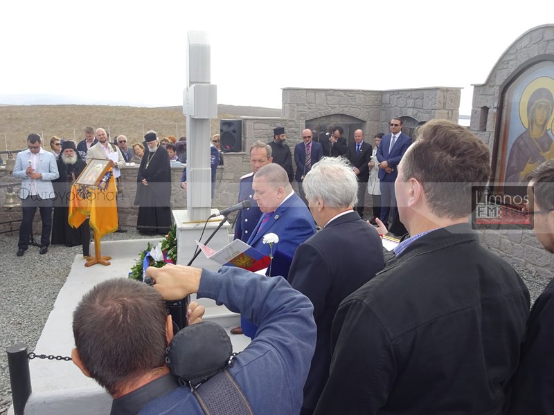 Ο Δήμαρχος Λήμνου κ. Δημήτρης Μαρινάκης στην ομιλία του τόνισε τη μεγάλη τιμή που αποτίεται κάθε χρόνο στους Ρώσους που ετάφησαν στη Λήμνο: «Η παρουσία σας εδώ και φέτος με μία πολυμελή αντιπροσωπεία, αποτελούμενη από σημαντικές προσωπικότητες της Εκκλησίας και του δημόσιου βίου, αποδεικνύει την μεγάλη τιμή που αποδίδετε στους προγόνους σας», ανέφερε ο κ. Μαρινάκης προσθέτοντας ότι «η ιστορία των Κοζάκων που ήρθαν και έζησαν στα μέρη αυτά αποτελεί αναπόσπαστο κομμάτι της ιστορίας της Λήμνου, όπως και όλα τα ιστορικά γεγονότα τα οποία συνέδεσαν το νησί μας με την πατρίδα σας τη Ρωσία».