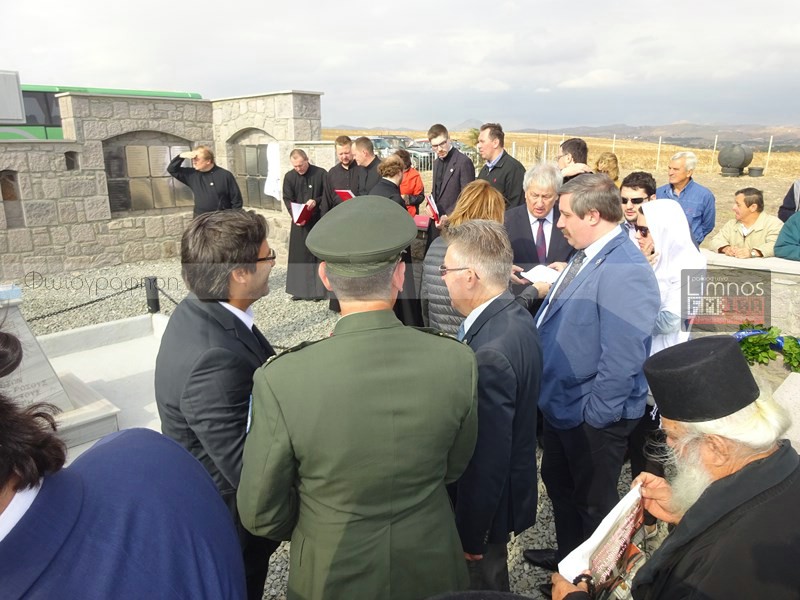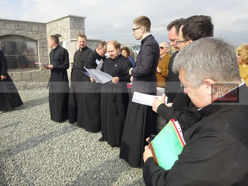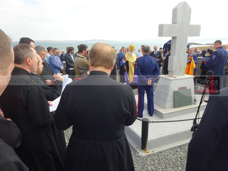 Στο μνημείο που έχει στηθεί στο χώρο του Ρωσικού Νεκροταφείου εψάλλη επιμνημόσυνη δέηση από τον Αρχιεπίσκοπο Γενεύης και Δυτικής Ευρώπης Μιχαήλ και τον Πρωτοπρεσβύτερο Μιχαήλ της Ρωσικής Ορθόδοξης Εκκλησίας της Αυτραλίας, παρουσία του Στρατηγού και διευθυντή του Ρωσικού Ινστιτούτου Στρατηγικών Ερευνών, Λεονίδ Ρεσέτνικοβ, του Γενικού Προξένου κ. Ποπόβ, του Αντιπεριφερειάρχη Βορείου Αιγαίου, κ. Κωνσταντίνου Αδαμίδη, του Στρατιωτικού Διοικητή Λήμνου Ταξίαρχου κ. Κωνσταντίνου Κούτρα, του Δημάρχου Λήμνου κ. Δημήτρη Μαρινάκη, του Αντιδημάρχου Λήμνου κ. Γιώργου Σακαρίκου, του Προέδρου της Τοπικής Κοινότητας Νέας Κούταλης , κ. Γιάννη Μοσχοβάκη σεβάσμιων πατέρων και άλλων επισήμων της αποστολής από τη Ρωσία.