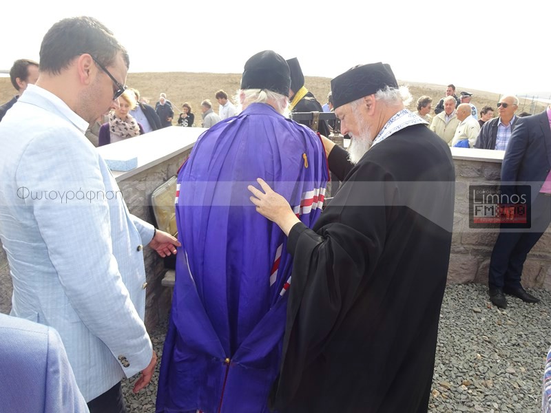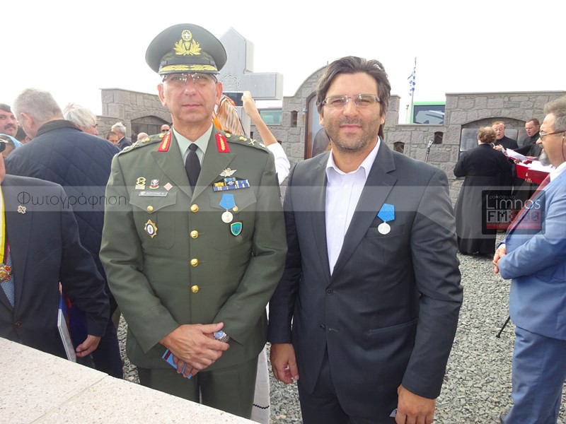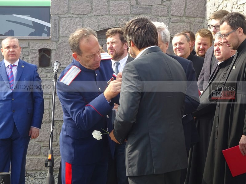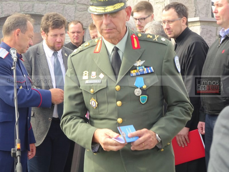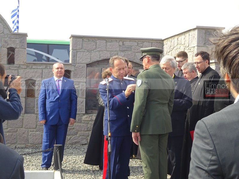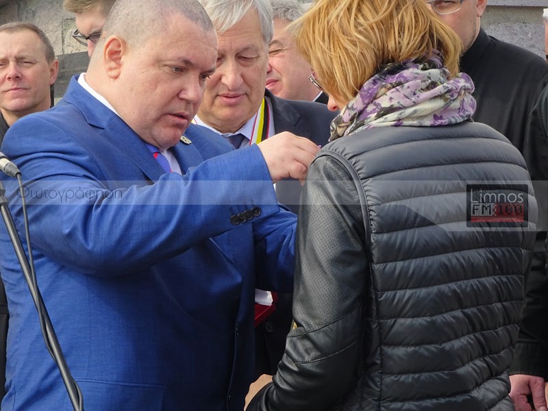 Ακολούθησε η απονομή τιμητικών μεταλλίων στον Γενικό Πρόξενο κ. Ποπόβ, τον Ταξίαρχο κ. Κωνσταντίνο Κούτρα και τον Δήμαρχο Λήμνου κ. Δημήτρη Μαρινάκη.