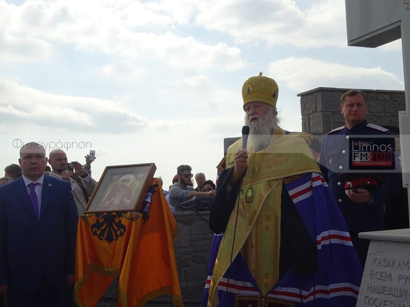 «Σήμερα σε αυτό το νησί βρίσκουμε θαυμαστή τη μνήμη των κεκοιμημένων εδώ από τους κατοίκους της Ελλάδος, από τη γη της οποίας αυτοί πέρασαν και μερικοί έμειναν. Όλες οι ευχαριστίες μας σε εσάς που διαφυλάξατε τη μνήμη αυτών των Ρώσων οι οποίοι αναγκάστηκαν να φύγουν από την πατρίδα τους και έπρεπε να χτίσουν κάτι καινούριο μέσα στην καρδιά τους και το τιμάτε. Μια βαθιά υπόκλιση σε εσάς. Ο Θεός να σας φυλάει», κατέληξε στην ομιλία του ο Αρχιεπίσκοπος.
