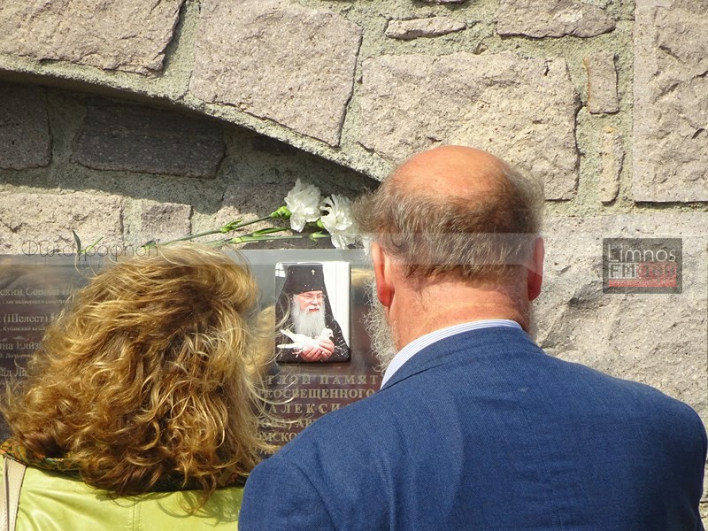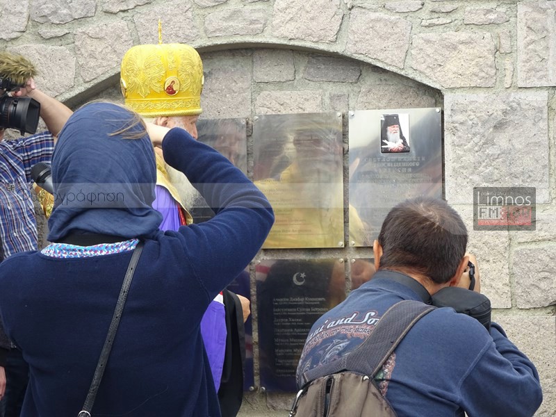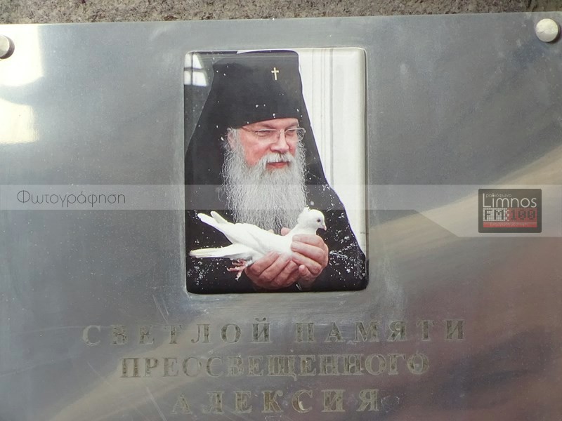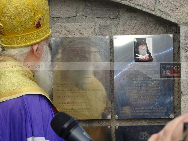 Στη συνέχεια εγκαινιάστηκε από τον Αρχιεπίσκοπο μεταλλική πλάκα εις μνήμην του Αρχιεπισκόπου Αλεξίου Κοστρομά και Γκάλιτς, ο οποίος εκοιμήθη το 2013. Η πλάκα τοποθετήθηκε στο μνημείο -που ανεγέρθη υπό την καθοδήγησή του- δίπλα στα ονόματα των νεκρών. Ο Αρχιεπίσκοπος Αλέξιος συνόδευε την αποστολή για δέκα περίπου χρόνια και έτρεφε ιδιαίτερα αισθήματα αγάπης για τη Λήμνο, ενώ χαρακτήριζε την περιοχή του Ρωσικού Νεκροταφείου ως «Ρωσικό Γολγοθά».