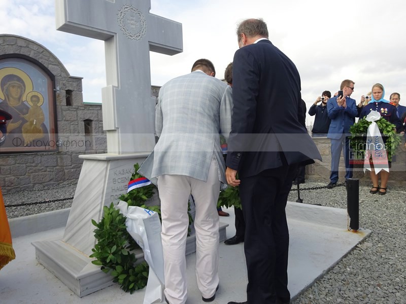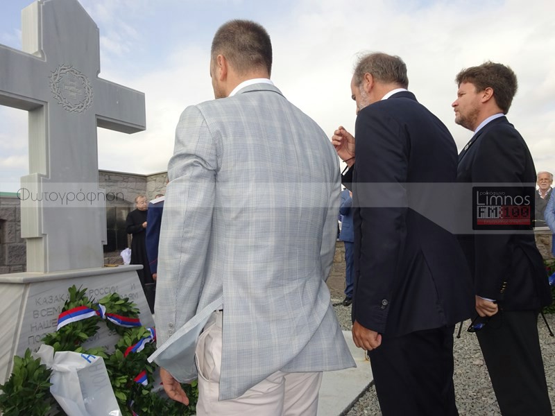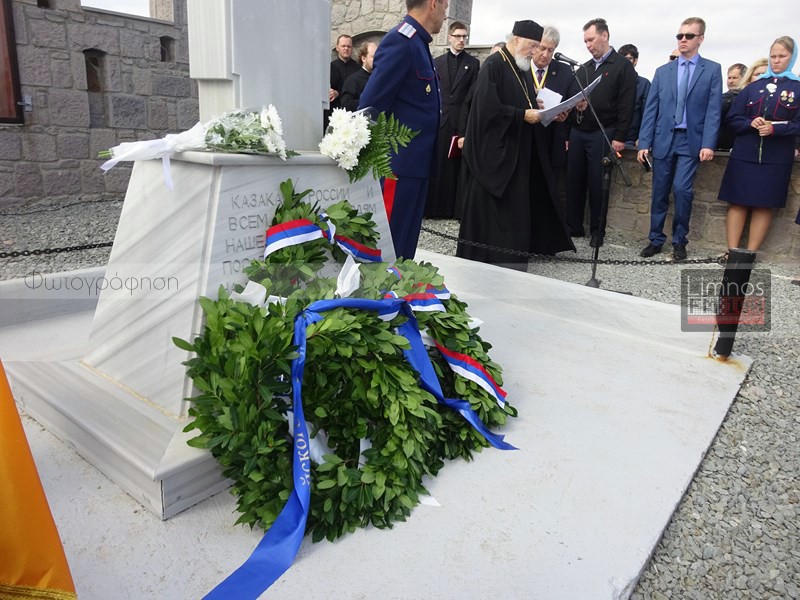 Ακολούθησαν κατάθεση στεφάνων και ομιλίες του Αρχιεπισκόπου Γενεύης και Δυτικής Ευρώπης Μιχαήλ, του Στρατηγού Λεονίδ Ρεσέτνικοβ, του Γενικού Προξένου κ. Ποπόβ, του Δημάρχου Λήμνου κ. Δημήτρη Μαρινάκη, του Προέδρου της Ένωσης Απογόνων των Βετεράνων της Καλλίπολης κ. Αλεξέι Γκριγκόριεβ, του Αντιπροέδρου της Ένωσης των Κοζάκων της Ρωσίας κ. Βασίλι Σομπάτσκιν, της εγγονής ενός από τους αρχηγούς των Κοζάκων, του Δ. Τιμόνοφ ο οποίος έχει ταφεί στο Ρωσικό Νεκροταφείο της Πούντας και του Πρωτοπρεσβύτερου της Ρωσικής Ορθόδοξης Εκκλησίας της Αυστραλίας , Μιχαήλ.