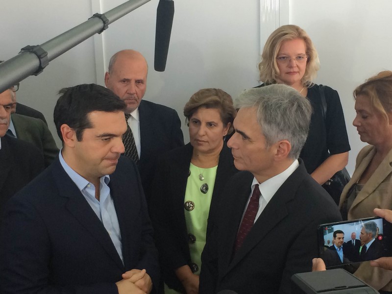 Η κα. Καλογήρου είχε κατ’ ιδίαν συνάντηση με τον Καγκελάριο της Αυστρίας κ. Βέρνερ Φάιμαν, τον οποίο ευχαρίστησε που επέλεξε να επισκεφθεί το νησί της Λέσβου σε μια τόσο δύσκολη στιγμή. «Θέλω να τονίσω σε εσάς, όπως τόνισα και στον Πρόεδρο Γιούνγκερ, ότι οι τοπικές και περιφερειακές αρχές, αλλά ιδίως ο απλός κόσμος –οι νησιώτες- δίνουν τον καλύτερό τους εαυτό με πνεύμα αλληλεγγύης, με αυταπάρνηση, με εθελοντική προσφορά», είπε στον αυστριακό Καγκελάριο και συμπλήρωσε: