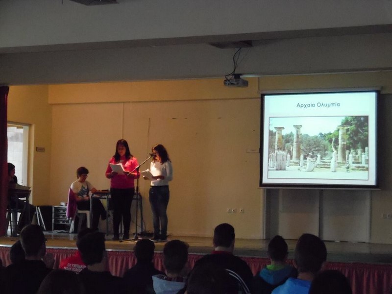Ακολούθησε προβολή παρουσίασης (Αρχαίοι – Σύγχρονοι – Παραολυμπιακοί αγώνες - Ολυμπιακά Ιδεώδη) και προβολή της ταινίας «Οι δρόμοι της φωτιάς». Στο τέλος δόθηκαν σε όλα τα παιδιά αναμνηστικά συμμετοχής.