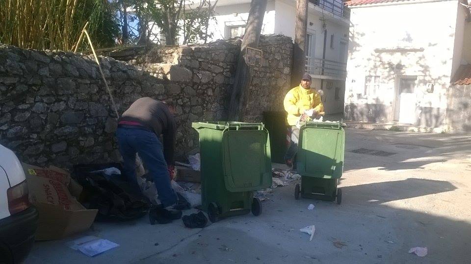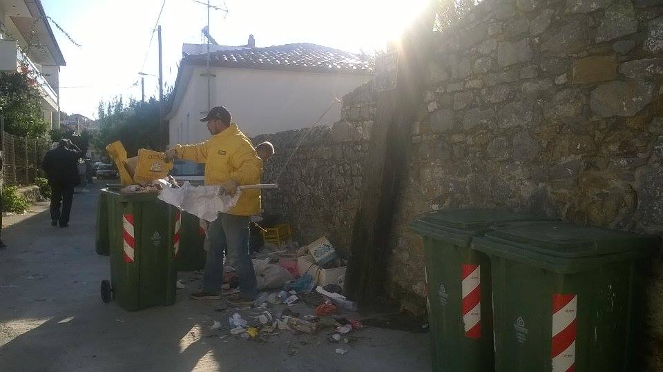 Οι φωτογραφίες που ακολουθούν, τραβήχτηκαν σήμερα στη Μύρινα. Οι κάδοι άδειοι και τα σκουπίδια έξω από αυτούς.