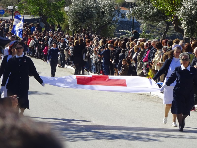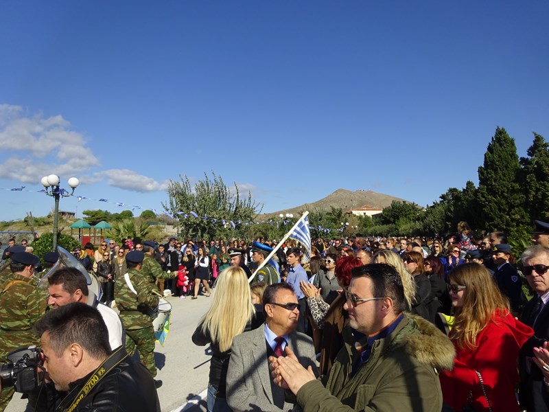 Την παρέλαση, που ξεκίνησε λίγο μετά τις 11.30, παρακολούθησε πλήθος κόσμου, χειροκροτώντας τους συμμετέχοντες.