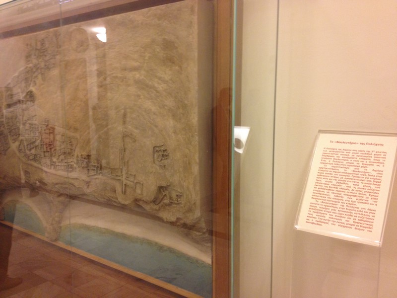 Το έργο τοποθετήθηκε στο κτήριο του Κοινοβουλίου το 2005, με πρωτοβουλία του τότε Υπουργού Αιγαίου και Νησιωτικής Πολιτικής κ. Αριστοτέλη Παυλίδη. Κατά την τελετή των αποκαλυπτηρίων του ομοιώματος του αρχαιολογικού χώρου της Πολιόχνης, που πραγματοποιήθηκε στις 15 Φεβρουαρίου της ίδιας χρονιάς, στο χώρο του Περιστυλίου της Βουλής, η τότε Πρόεδρος Άννα Μπενάκη - Ψαρούδα είχε αναφέρει: «Καθώς βρισκόμαστε στις απαρχές της οριστικής ευρωπαϊκής ενοποίησης, έχει ιδιαίτερη σημασία για τη Βουλή των Ελλήνων και συνολικά για τη χώρα μας ότι θα μπορούμε να επιδεικνύουμε το μνημείο αυτό, που αποτυπώνει τον αρχαιότερο χώρο κοινωνικού διαλόγου στην Ευρώπη, μια μορφή βουλευτηρίου εκείνης της εποχής, στους πολλούς επισκέπτες μας και ιδίως στους νέους που επισκέπτονται καθημερινά το Κοινοβούλιο με τα σχολεία τους».