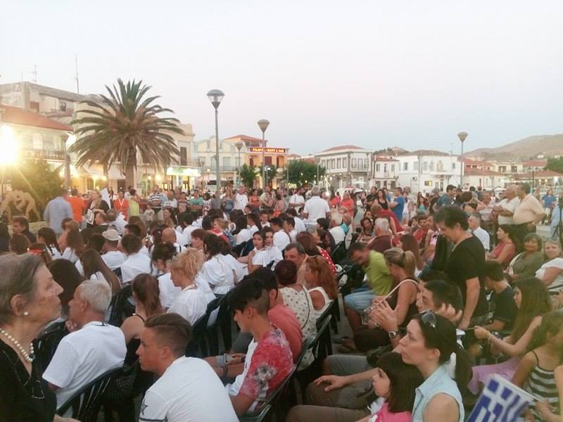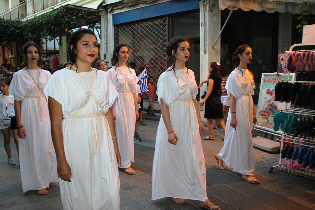 Στις 8 το βράδυ ξεκίνησε η τελετή έναρξης του Αρχαίου Πεντάθλου με δρώμενο από την προϊστορική Μύρινα, για να ακολουθήσει παρέλαση των ομάδων που θα συμμετάσχουν στην αγορά της πόλης υπό τους ήχους της φιλαρμονικής του Δήμου.