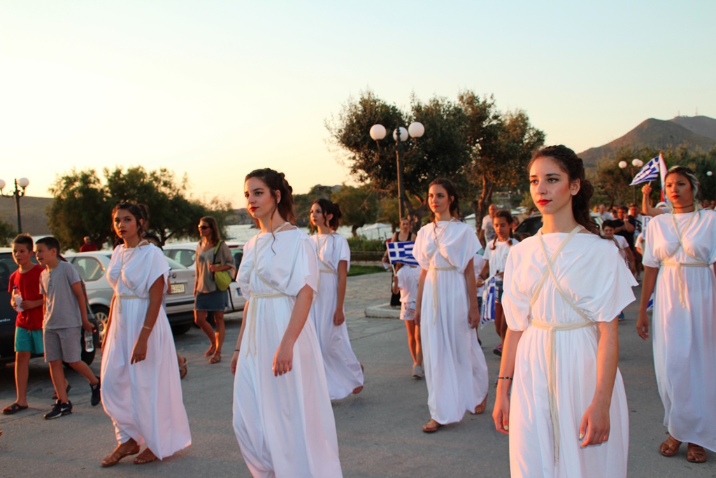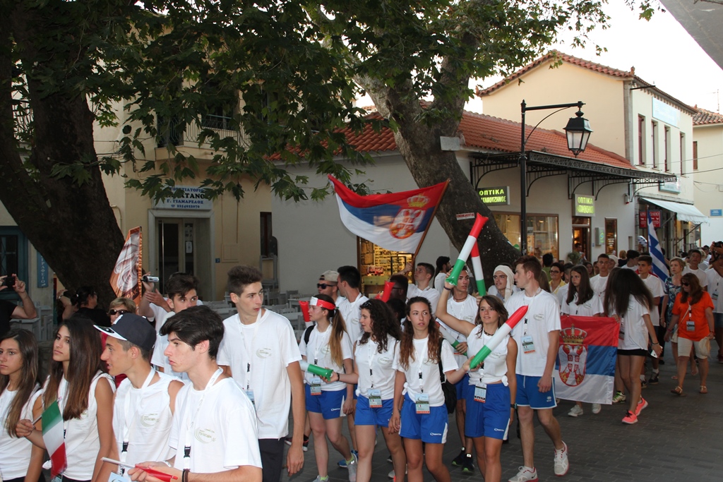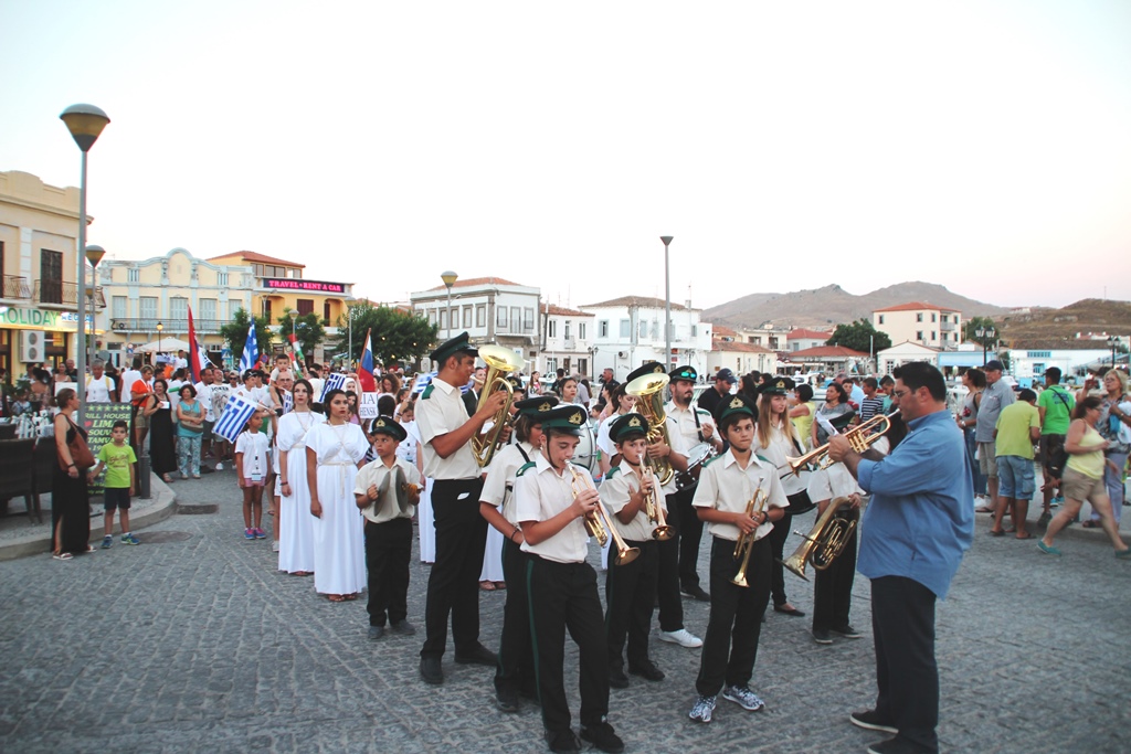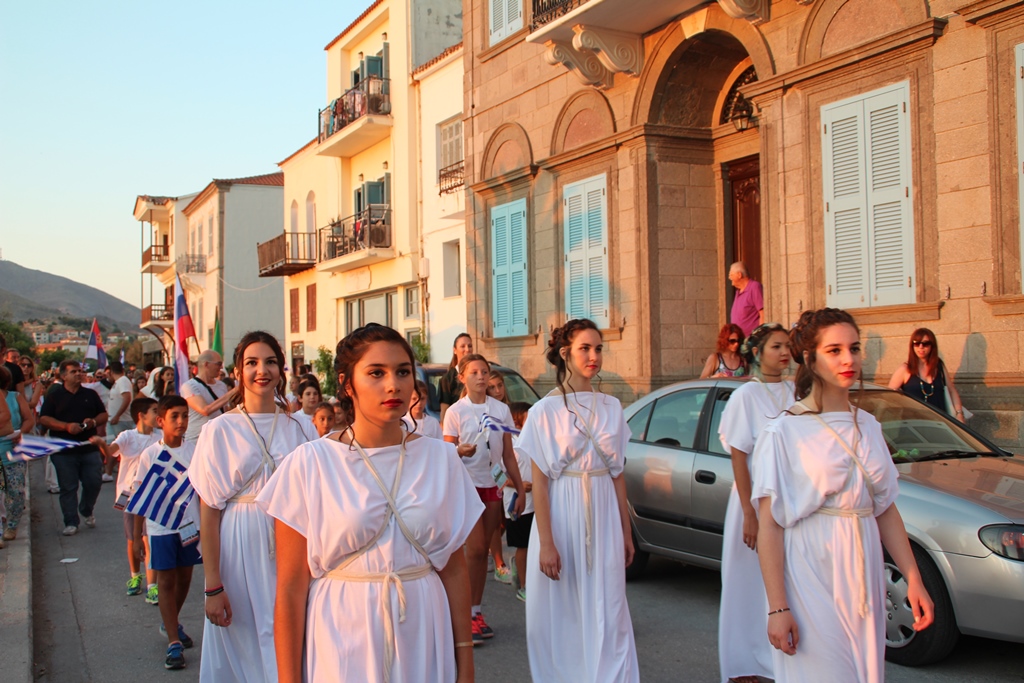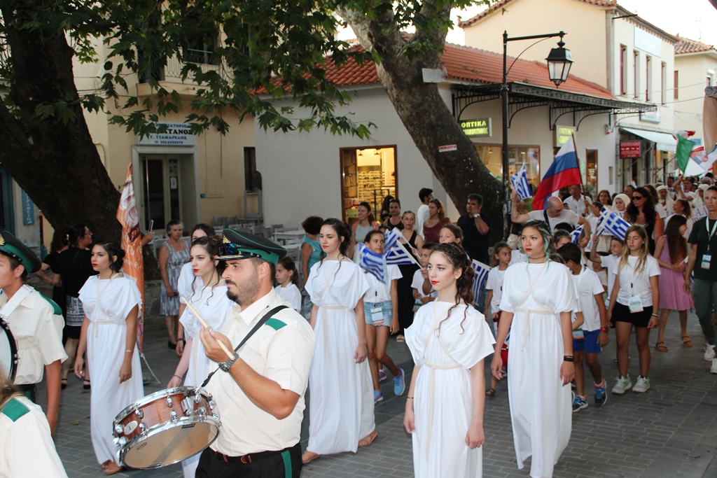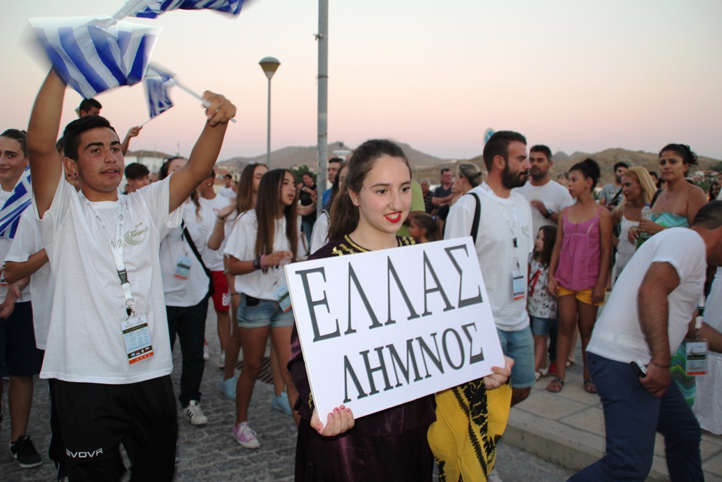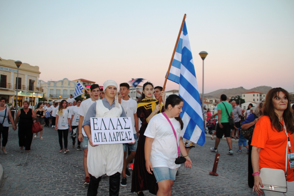 Στη συνέχεια οι ομάδες με τη συνοδεία της μουσικής της Φιλαρμονικής του Δήμου Λήμνου παρέλασαν από τον Ρωμέικο Γιαλό μέχρι το παλιό λιμάνι της Μύρινας, πλημμυρίζοντας την πόλη μας με την ζωντάνια και τη χαρά των νέων από διάφορα μέρη της Ελλάδας και της Ευρώπης που συμμετέχουν στο Αρχαίο Πένταθλο Λήμνου. Ανάμεσα στις σημαίες των ομάδων και αυτή της Ρωσίας, που παρά τις προσπάθειες που κατεβλήθησαν μέχρι τελευταίας στιγμής, λόγω αντικειμενικών δυσκολιών δεν κατέστη δυνατόν να είναι φέτος μαζί μας.