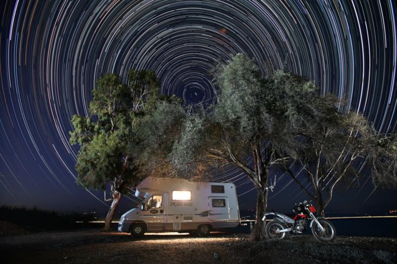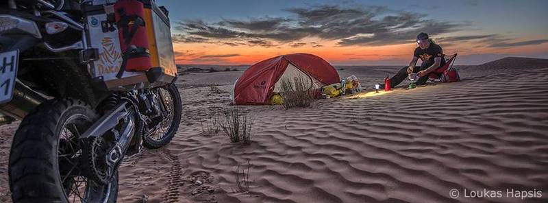 Πριν αποκτήσει το αυτοκινούμενο, είχε επιστρατεύσει όλους τους τρόπους για να γυρίζει τον κόσμο χωρίς ούτε ένα check-in σε ξενοδοχείο. Με τη σκηνή του και το τζιπ ή την endurο του, ο νομάς των φωτογράφων έχει κατασκηνώσει στα πιο απίθανα μέρη του κόσμου: από τη μυστηριακή Δήλο και την έρημο της Τυνησίας μέχρι τα νησιά του Πάσχα.