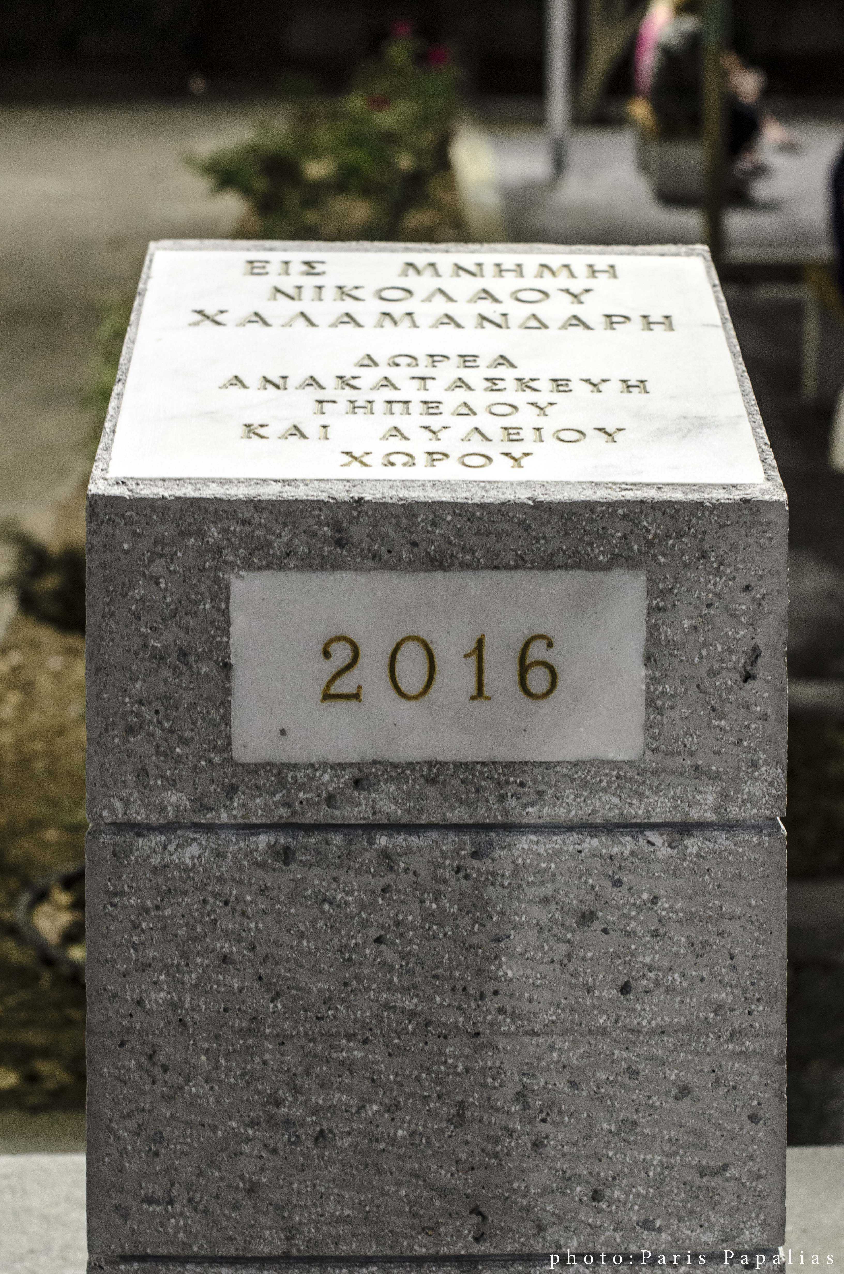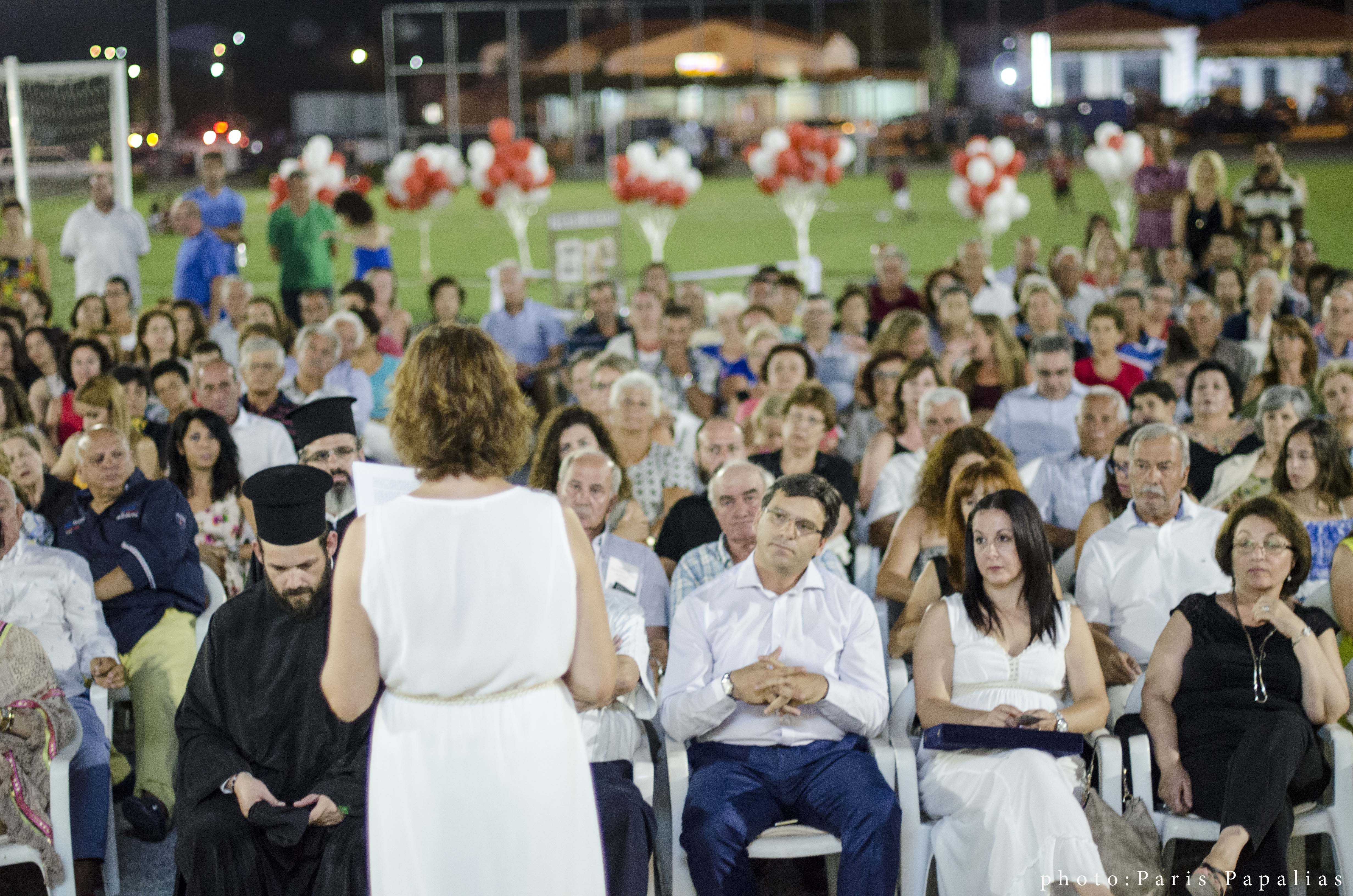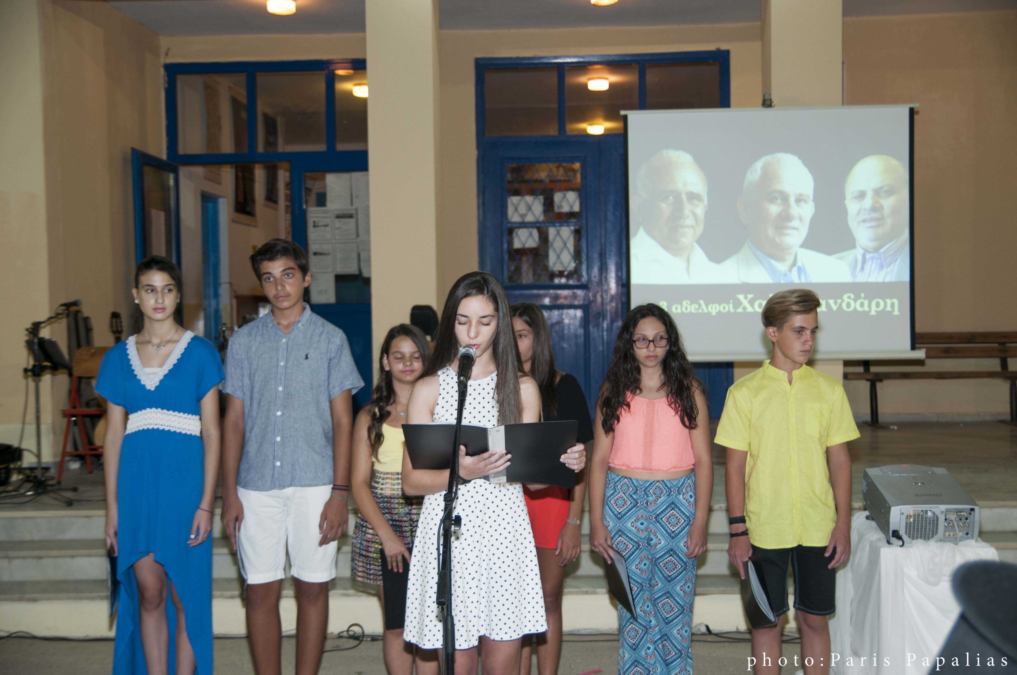 Κατά τη διάρκεια της εκδήλωσης, αναγνώστηκε μήνυμα του Περιφερειακού Διευθυντή Α' Βάθμιας και Β' Βάθμιας Εκπαίδευσης Βορείου Αιγαίου κ. Αριστείδη Καλάργαλη, ο οποίος ανέφερε μεταξύ άλλων: «Το θετικό γεγονός αποκτά ιδιαίτερη αξία, καθότι η δαπάνη έγινε με την ευγενική χορηγία των αδελφών Χαλαμανδάρη, οι οποίοι με την πράξη τους αυτή συνεχίζουν την παράδοση των περασμένων αιώνων της ευεργεσίας και δωρεάς προς την εκπαίδευση και τα σχολεία. Παρακαλώ διαβιβάστε τα συγχαρητήρια προς τους χορηγούς, τη δημοτική και κοινοτική αρχή και σε όσους συνέβαλαν με οιονδήποτε τρόπο στην ανακατασκευή του γηπέδου και του αύλειου χώρου».