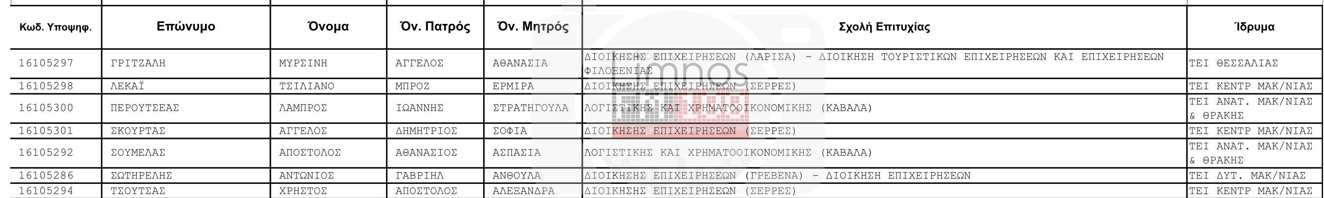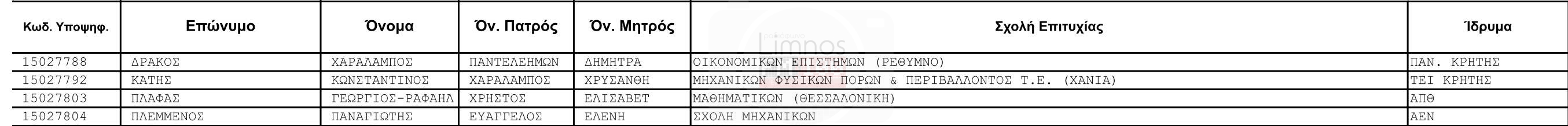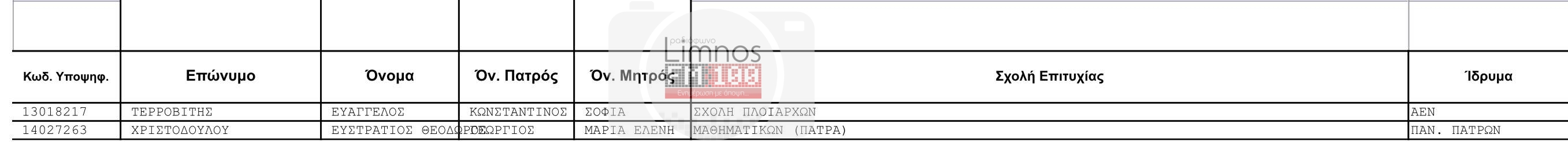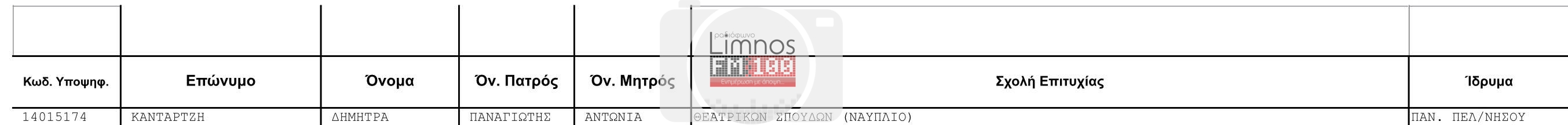 Επιτυχόντες Επιλογής Γενικού Λυκείου Μύρινας Ομάδας Β 2016 (Παλαιό Σύστημα)