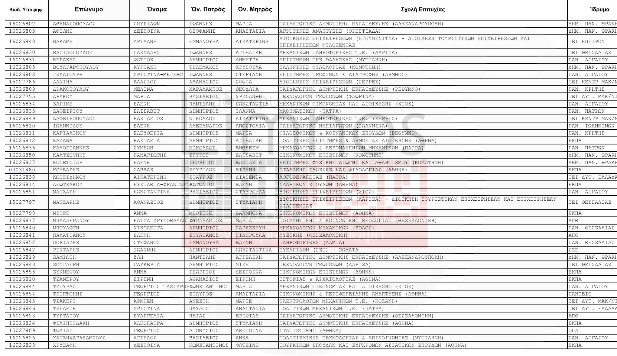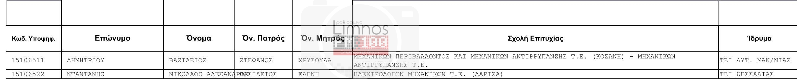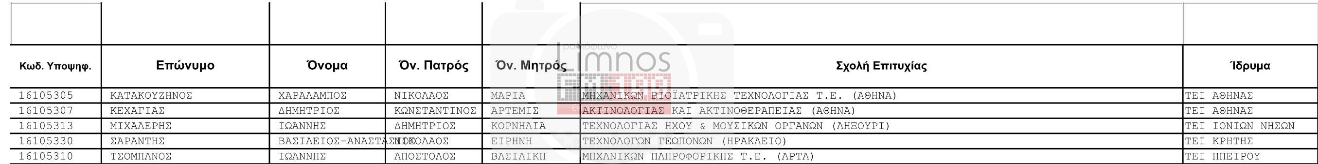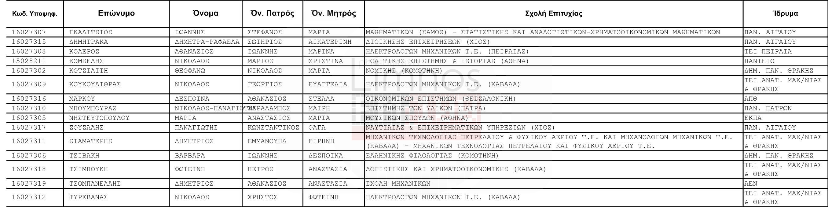 Επιτυχόντες Επιλογής Γενικού Λυκείου Μύρινας Ομάδας Β 2016 (Παλαιό Σύστημα)