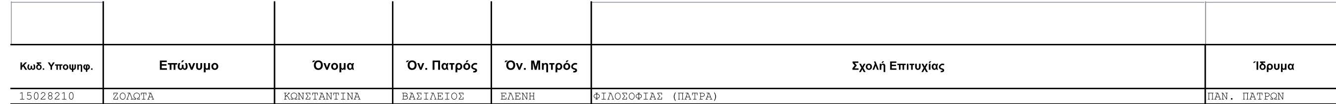 Επιτυχόντες Αποφοίτων ΕΠΑ.Λ Μούδρου ΟΜΑΔΑΣ Α 2016 (10% ΑΠΟΦΟΙΤΟΙ 2015)