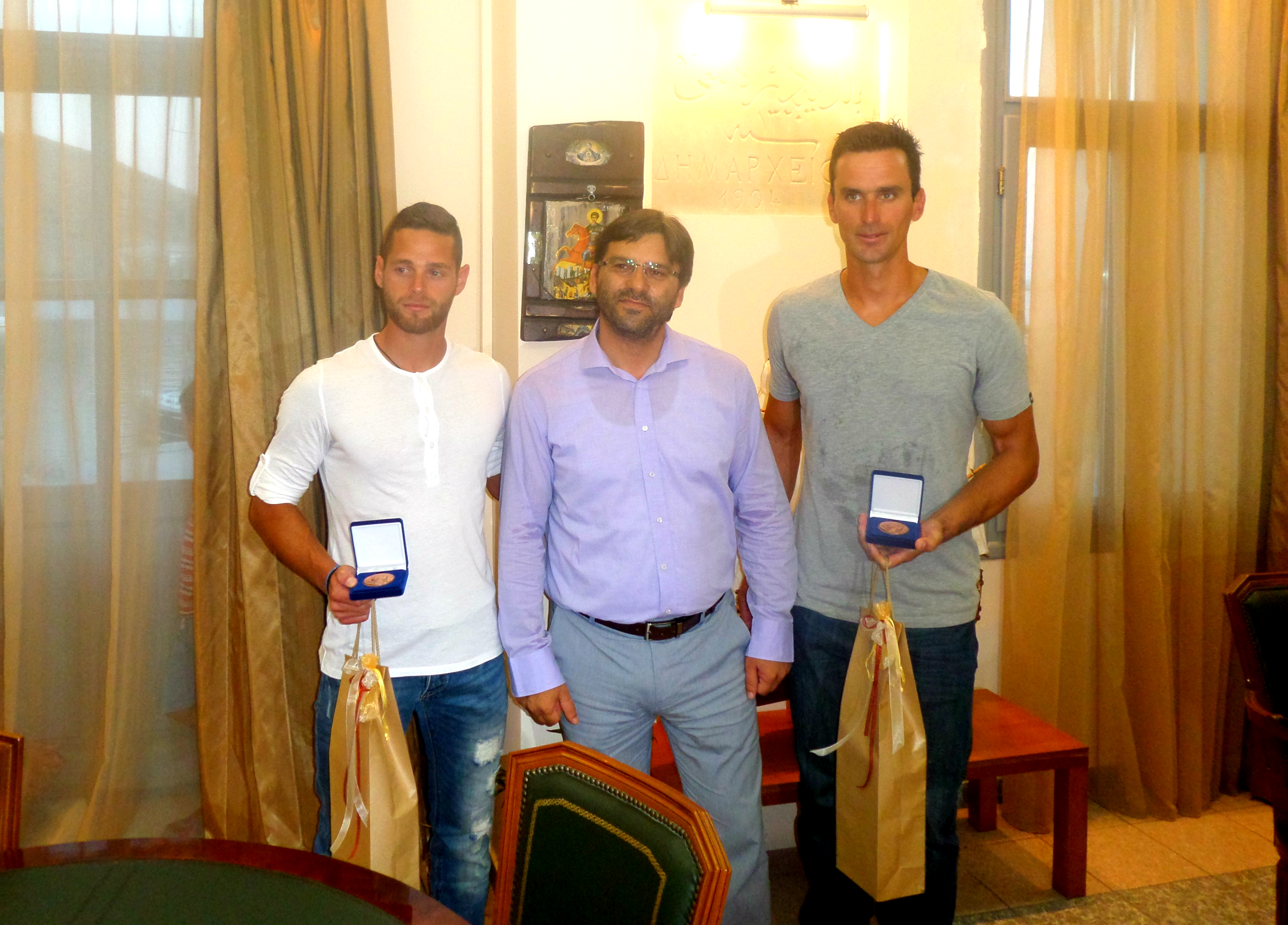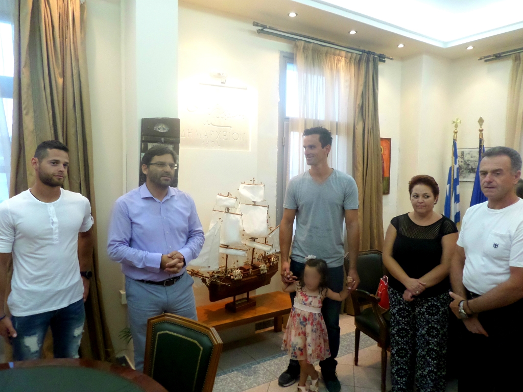 Ο Δήμαρχος εξέφρασε τα συγχαρητήριά του στον Παναγιώτη Μαγδανή, στους γονείς του και τους προπονητές του για τις μεγάλες επιτυχίες στις πρόσφατες αθλητικές διοργανώσεις της Ολυμπιάδας του Ρίο και του Παγκόσμιου Πρωταθλήματος του Ρότερνταμ, αλλά και τη συνολική πορεία του, επέδωσε στους δύο αθλητές το έμβλημα του Δήμου και προσέφερε την εικόνα του Πολιούχου της Λήμνου Αγίου Σώζοντος.