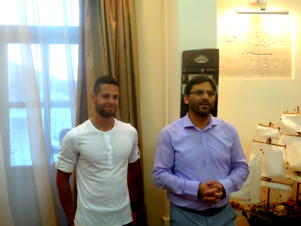 Ο Δήμαρχος Λήμνου κ. Δημήτρης Μαρινάκης υποδέχθηκε εχθές, Τετάρτη 31 Αυγούστου στο Δημαρχείο τον λημνιό Ολυμπιονίκη και Παγκόσμιο Πρωταθλητή της κωπηλασίας Παναγιώτη Μαγδανή.
