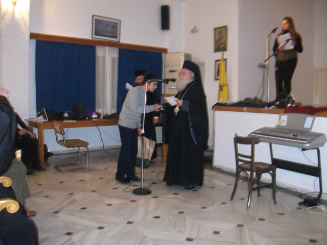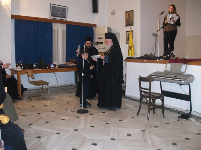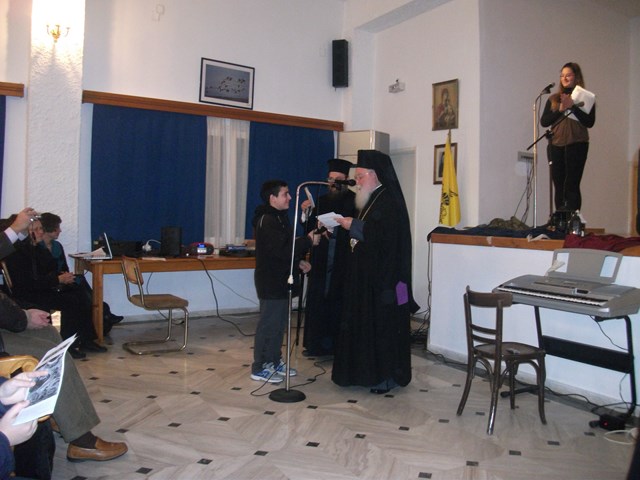 Κατά την διάρκεια της εκδήλωσης, ο Μητροπολίτης Λήμνου & Αγίου Ευστρατίου, απένειμε βραβεία και επαίνους, στα παιδιά των σχολείων της Λήμνου, που συμμετείχαν στον εικαστικό και λογοτεχνικό διαγωνισμό της Μητρόπολης, με θέμα: "Συμπλήρωση 100 χρόνων από την απελευθέρωση της Λήμνου".