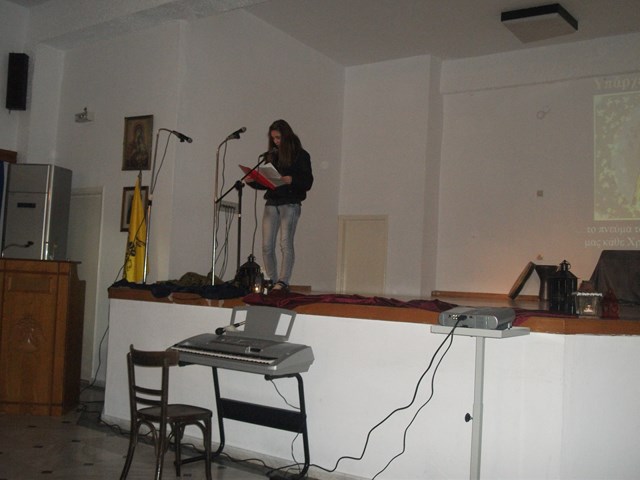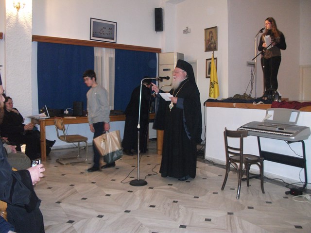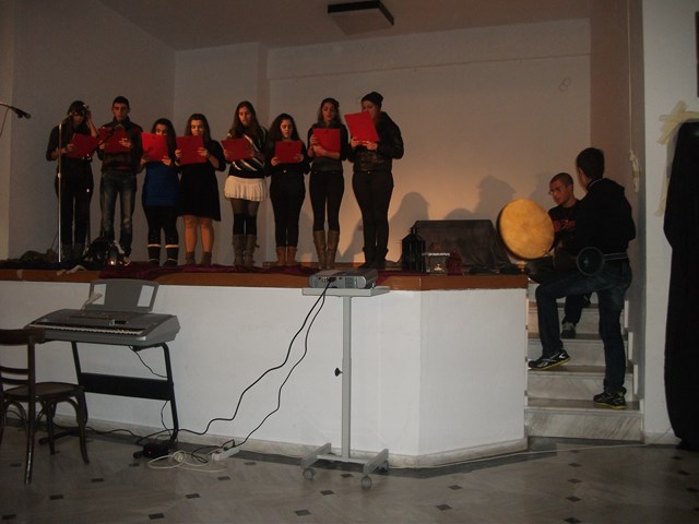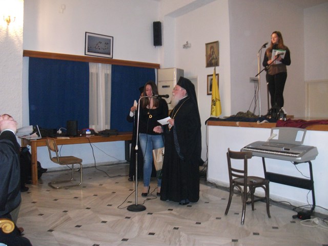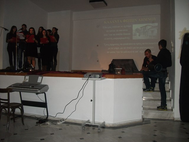 Την έναρξη της εκδήλωσης, έκανε ο Σεβασμιότατος Μητροπολίτης Λήμνου και Αγίου Ευστρατίου κ. Ιερόθεος, ενώ στο χαιρετισμό του ο Διευθυντής του Γυμνασίου Μύρινας κ. Μανώλης Ρόκκος, ευχαρίστησε την εκπαιδευτικό Μαίρη Γεροντάρα, καθώς και τους υπόλοιπους καθηγητές αλλά και τους μαθητές που συνέβαλαν στην διοργάνωση της γιορτής .
