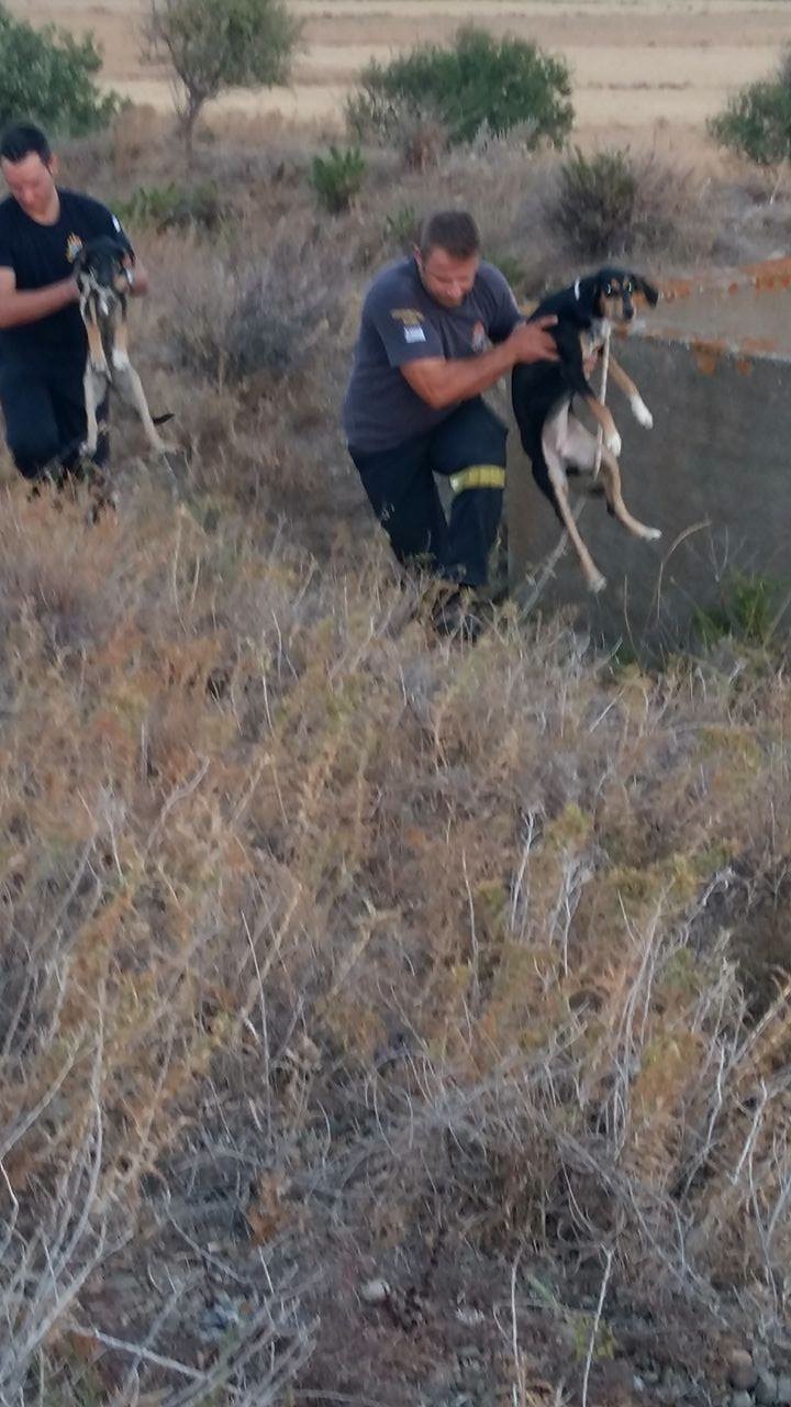 Ενημερώσαμε την Πυροσβεστική η οποία έσπευσε να απεγκλωβίσει τα δύο άτυχα ζώα.