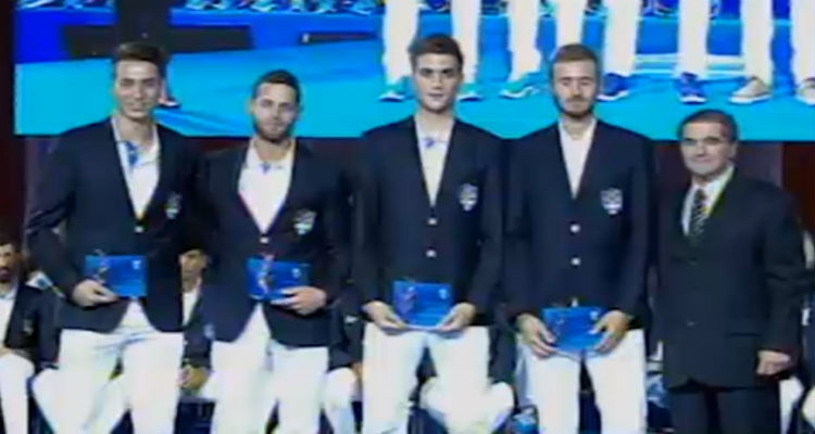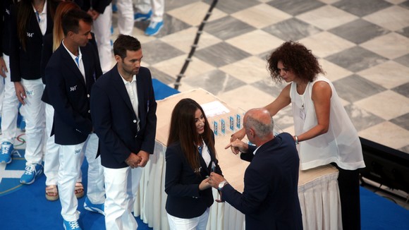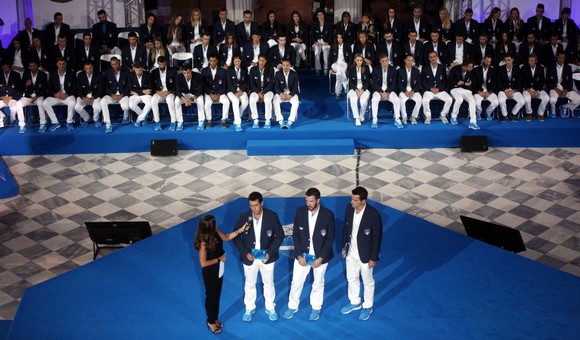 Η ομάδα πόλο των ανδρών, η οποία κατέλαβε την 6η στο ολυμπιακό τουρνουά βραβεύτηκε από τις Βούλα Κοζομπόλη, Εύη Μωραϊτίδου και Γεωργία Ελληνάκη. Ο αρχηγός της ομάδας, Χρήστος Αφρουδάκης είπε στην σύντομη ομιλία του: «Ήταν μεγάλη τιμή το γεγονός ότι ήμασταν η μόνη ομάδα στο Ρίο. Δυστυχώς, είχαμε οι ίδιοι δημιουργήσει πολύ υψηλές προσδοκίες τις οποίες δεν καταφέραμε να εκπληρώσουμε. Συνεχίζουμε με σκοπό να κατακτήσουμε στο Ρίο ότι δεν καταφέραμε στο Πεκίνο και την Αθήνα, μπορούμε αφού η ομάδα αποτελείται από νέα παιδιά».
