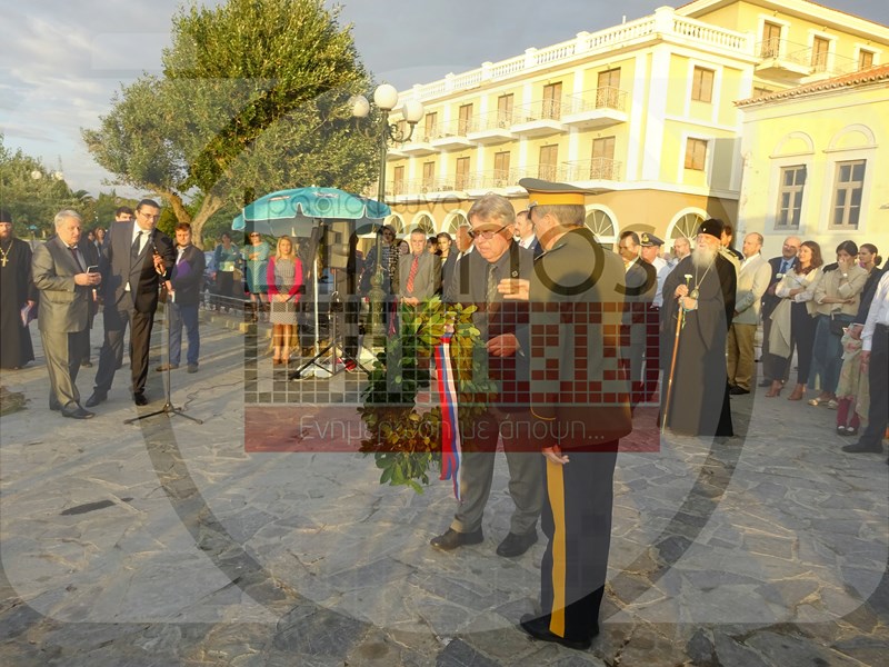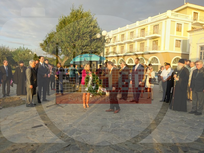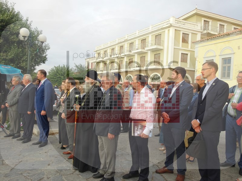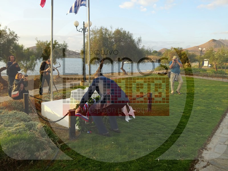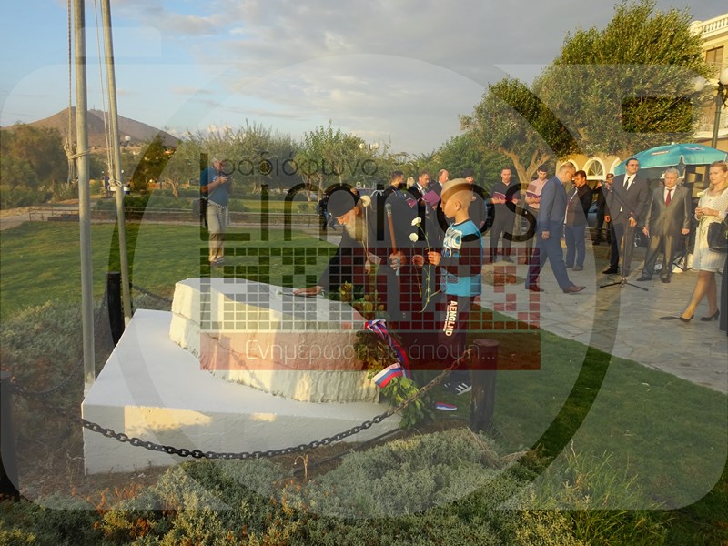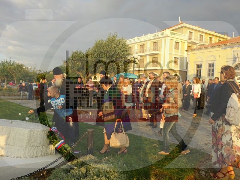 Το μεσημέρι της Πέμπτης έφτασε στο αεροδρόμιο του νησιού η αποστολή από τη Ρωσία και στις 6 το απόγευμα πραγματοποιήθηκε η καθιερωμένη κατάθεση στεφάνων στο Μνημείο Ηρώων - Πεσόντων Αγωνιστών για την απελευθέρωση της Ελλάδας, στον Ρωμέικο Γιαλό, καθώς επίσης και στο μνημείο των ναυτών Α. Ορλώφ και Στ. Σενιάβιν, παρουσία του Αρχιεπισκόπου Γενεύης και Δυτικής Ευρώπης Μιχαήλ, του Πρέσβη, εκπροσώπου του Υπουργείου Εξωτερικών κ. Ντολκόβ, του Γενικού Προξένου της Ρωσίας στη Θεσσαλονίκη κ. Αλεξέι Ποπόβ, του προέδρου του Ρωσικού Ινστιτούτου Στρατηγικών Ερευνών κ. Λεονίδ Ρεσέτνικοβ και του Επίτιμου Προξένου της Ρωσίας στην Αλεξανδρούπολη κ. Κωνσταντίνου Γκαμπαερίδη.