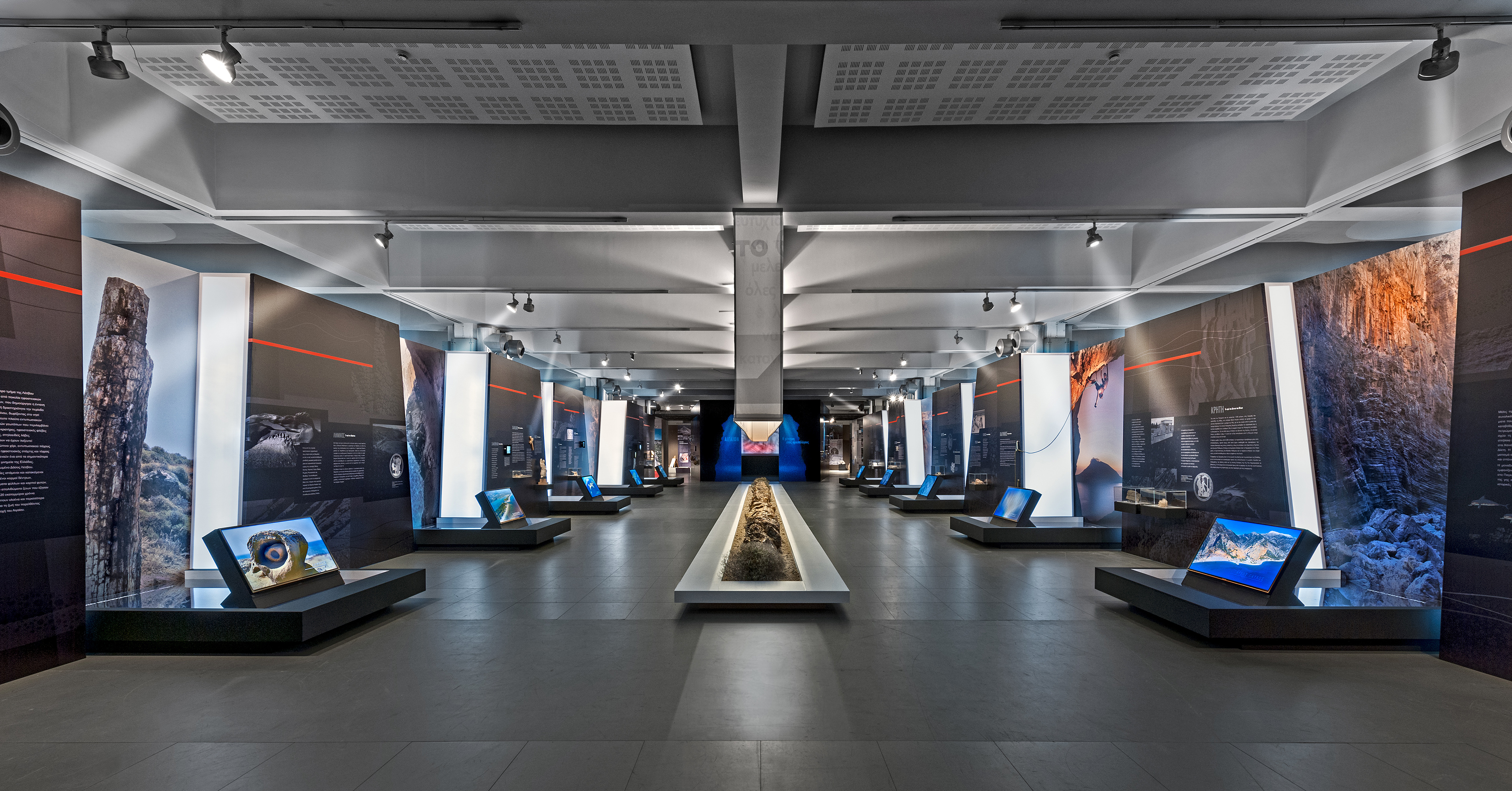 • «Μνήμες Γαίας: Από την Τηθύ στο Αιγαίο». Η κεντρική αυτή ενότητα παρουσιάζει ολόκληρη τη γεωλογική ιστορία της περιοχής από τον αρχικό ωκεανό της Τηθύος, στην εξέλιξή του στην ενιαία ξηρά της μυθικής Αιγηίδας, έως τη σημερινή μορφή του ανάγλυφου του ελληνικού αρχιπελάγους. Τα πανέμορφα νησιά του, τα εντυπωσιακά πελάγη του, τα γεωλογικά μνημεία και η πολυμορφία των γήινων σχηματισμών, το υγρό στοιχείο και η ανάδυση της στεριάς αποτελούν τα στοιχεία αυτής της ενότητας.