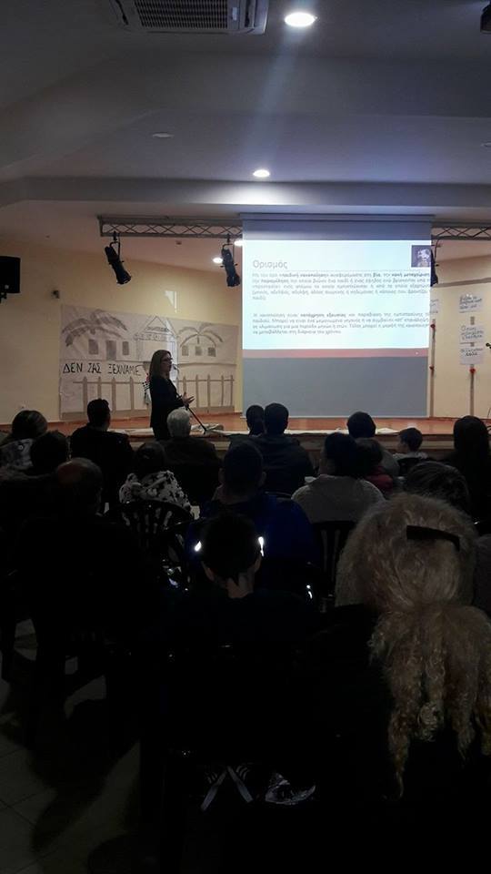 Η εκδήλωση πραγματοποιήθηκε στον χώρο του 2ου Δημοτικού Σχολείου, στις 6 το απόγευμα του Σαββάτου 19 Νοεμβρίου, με ομιλήτριες τη Μαρία Μαμαλίκου, Σχολική Ψυχολόγο, και την Αγγελική Αβραμίδου, Κοινωνικό Λειτουργό.