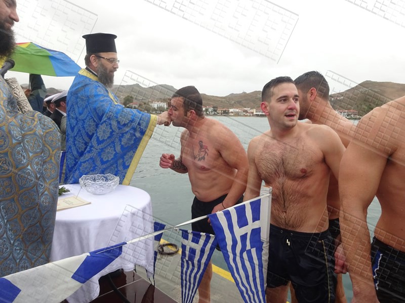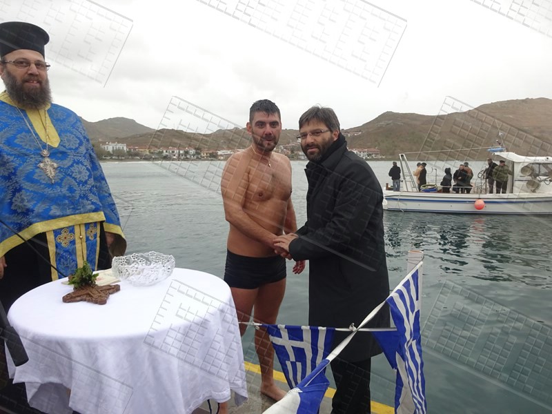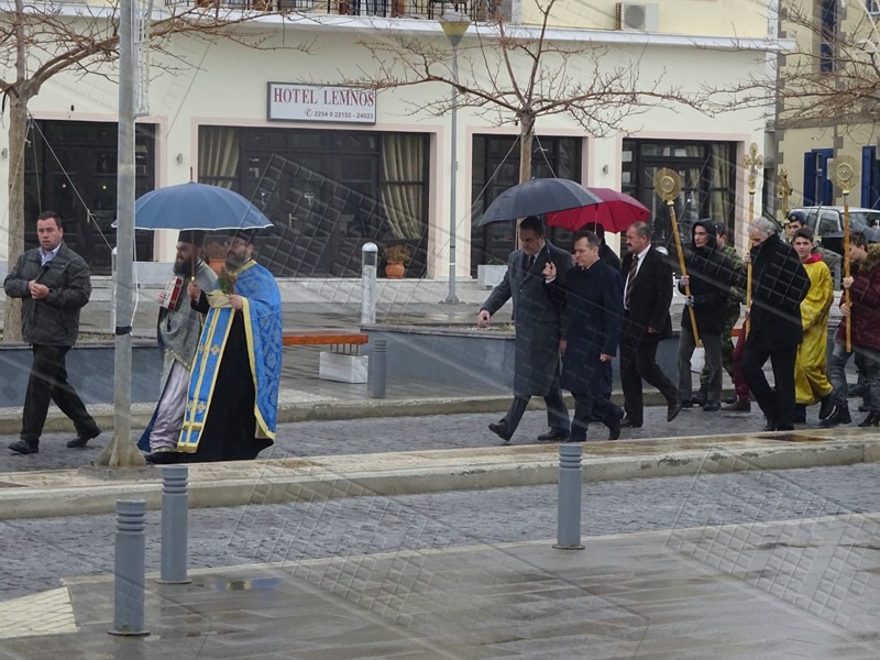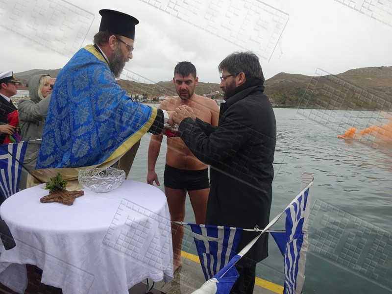 Στη Μύρινα, μετά την τέλεση της Θείας Λειτουργίας και την Ακολουθία του Μεγάλου Αγιασμού στον Μητροπολιτικό Ναό της Αγίας Τριάδας, ακολούθησε η τελετή κατάδυσης του Τιμίου Σταυρού στο παλιό λιμάνι, παρουσία του Επάρχου Λήμνου Βαγγέλη Γιαρμαδούρου, του Δημάρχου Λήμνου Δημήτρη Μαρινάκη, του Αντιδημάρχου Νίκου Μοσχάκη αλλά και του Βουλευτή της Νέας Δημοκρατίας στο Νομό Λέσβου Χαράλαμπου Αθανασίου, ο οποίος από εχθές πραγματοποιεί επίσκεψη στο νησί.