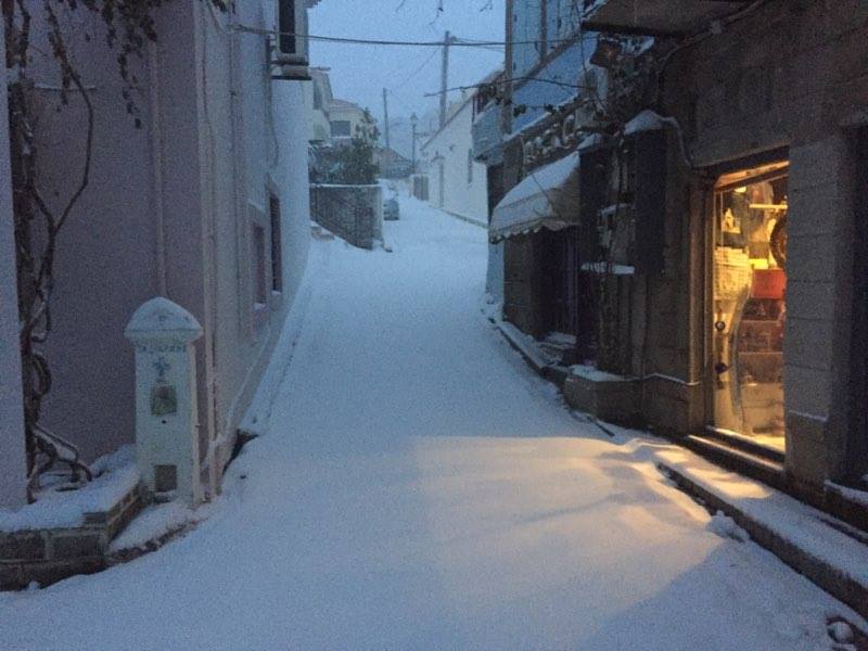 Οι Λημνιοί για άλλη μια φορά ξύπνησαν και αντίκρισαν λευκό τοπίο, το οποίο όμως συνοδεύτηκε και με αρκετά προβλήματα, αφού η κίνηση των οχημάτων ακόμα και στο κεντρικό οδικό άξονα του νησιού πραγματοποιείται μόνο με αλυσίδες.