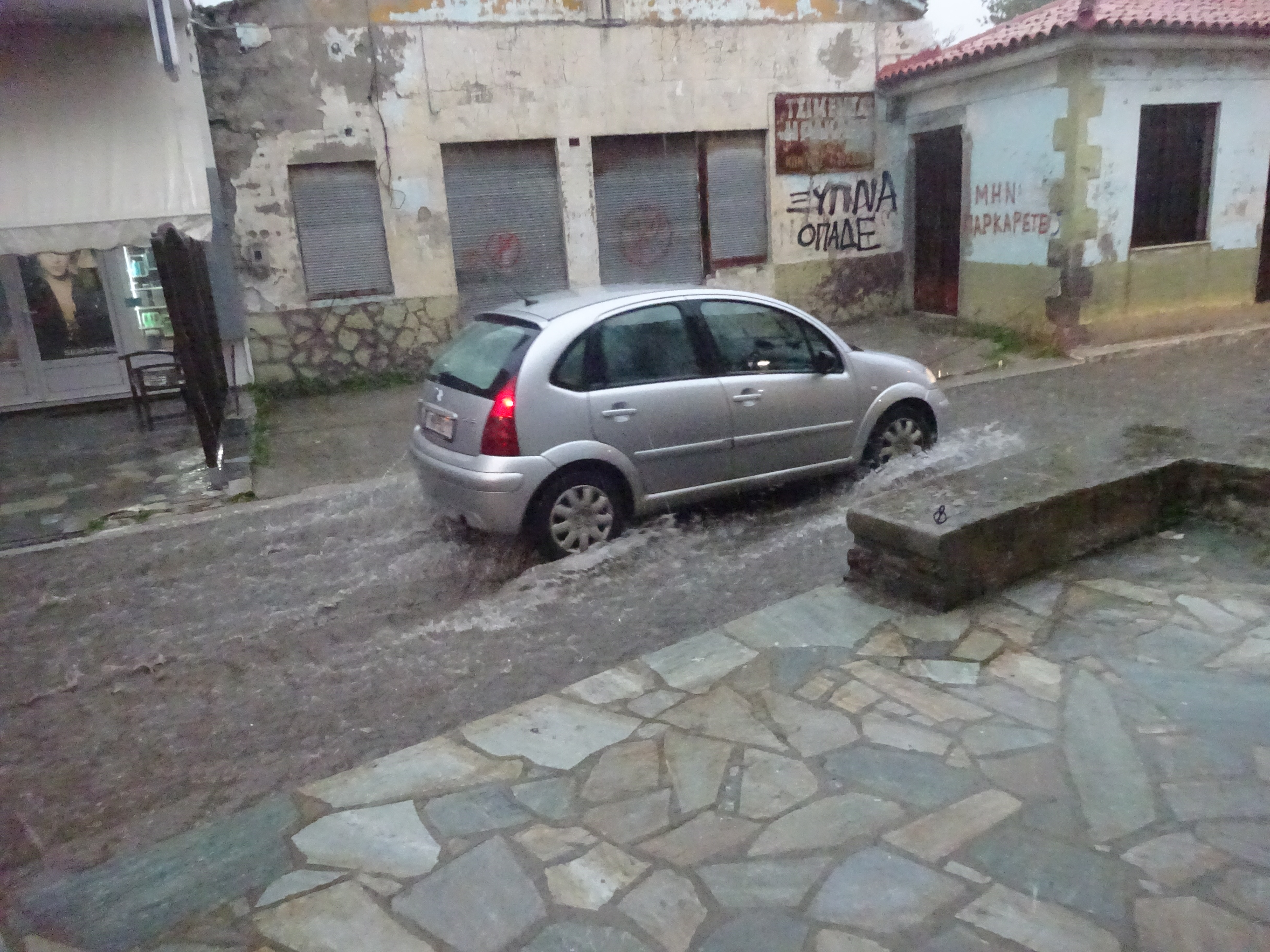 Έντονο πρόβλημα παρουσιάζει η περιοχή Τρίφωτο. Στην πλατεία των ΚΤΕΛ συνεργείο του Δήμου επιχειρεί να ανοίξει βουλωμένο φρεάτιο, καθώς σε μια μεριά της πλατείας έχει δημιουργηθεί ήδη λίμνη.