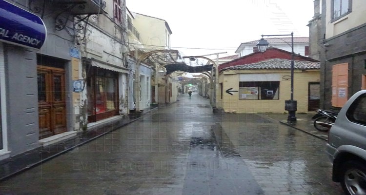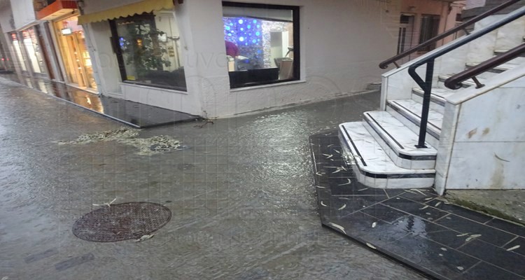 Στο στενό δρομάκι δίπλα στην Πειραιώς αναγνώστες μας ενημέρωναν ότι το νερό έχει φτάσει ως τα σκαλιά της τράπεζας.