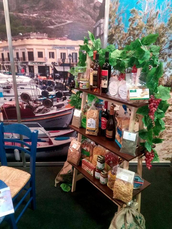 Όπως θα δείτε στις φωτογραφίες του Δήμου Λήμνου, έχει στηθεί ένα παραδοσιακό καφενείο με τα τοπικά προϊόντα του νησιού να πρωταγωνιστούν και ένα τεράστιο «παράθυρο» με φόντο το γραφικό λιμανάκι της Μύρινας και το επιβλητικό κάστρο της πόλης, να «κλείνει» το μάτι στους επισκέπτες της έκθεσης.