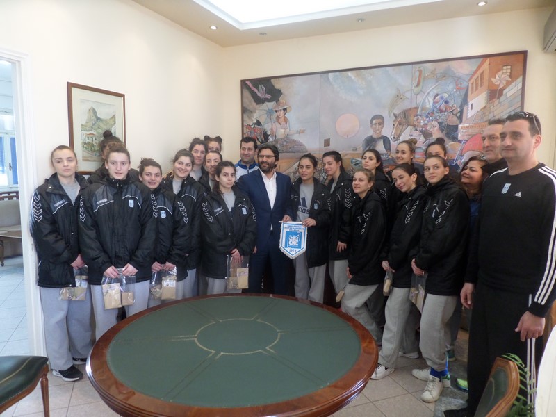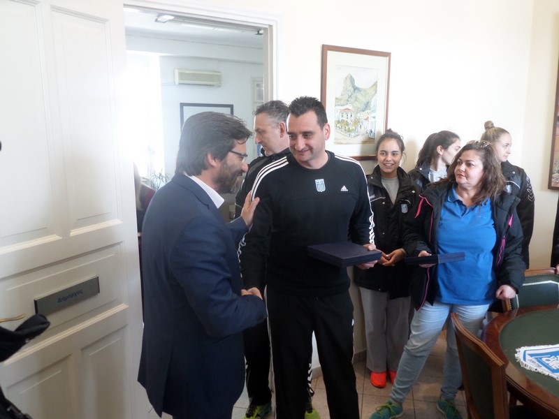 Ο Δήμαρχος είχε μια ζεστή συζήτηση με τα μέλη της ομάδας και τους ευχήθηκε καλή επιτυχία στους αγώνες που θα ακολουθήσουν, ενώ τους προσέφερε αναμνηστικά δώρα.