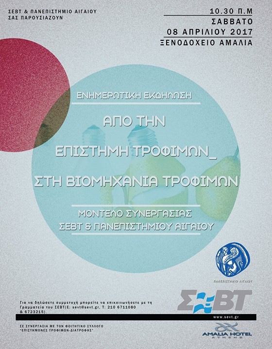Την εκδήλωση προσφώνησαν από πλευράς του Πανεπιστημίου ο Πρύτανης Καθηγητής Στέφανος Γκρίτζαλης, ο Πρόεδρος του Τμήματος Αναπληρωτής Καθηγητής Χαράλαμπος Καραντώνης, ο Πρόεδρος του φοιτητικού συλλόγου Κωνσταντίνος Γκεζέπης, από πλευράς ΣΕΒΤ η Γενική Διευθύντρια κα Βάσω Παπαδημητρίου, και από πλευράς της πολιτείας ο βουλευτής Λέσβου κ. Γεώργιος Πάλλης. Στην εκδήλωση, στα πλαίσια του μοντέλου συνεργασίας των δύο φορέων παρουσιάστηκαν: