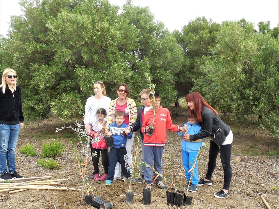 «Με επιτυχία πραγματοποιήθηκε η δεντροφύτευση στον ελαιώνα .Τα παιδιά του σχολείου ειδικής αγωγής φύτεψαν ελαιόδεντρα , με αυτόν τον τρόπο καλλιεργούμε την περιβαλλοντική συνείδηση και έκαναν ένα όμορφο περίπατο στο κτήμα».