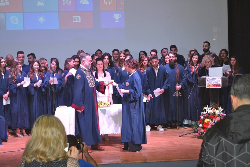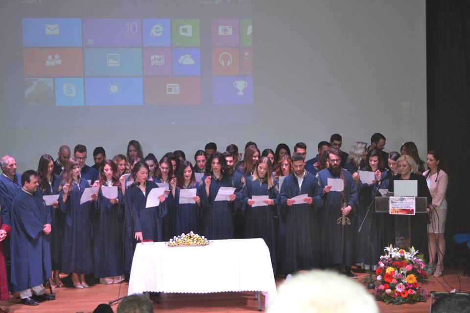 Η τελετή Καθομολόγησης πραγματοποιήθηκε στις 12:00 το μεσημέρι στο κινηματοθέατρο «Μαρούλα», με 38 φοιτητές να παραλαμβάνουν το πτυχίο τους, μεταξύ των οποίων και δυο τελικά Λημνιοί, ο Νίκος Παλαιολογούδιας από τον Άγιο Δημήτριο και η Αιμιλία Μπελίτσου απο τα Καμίνια.
