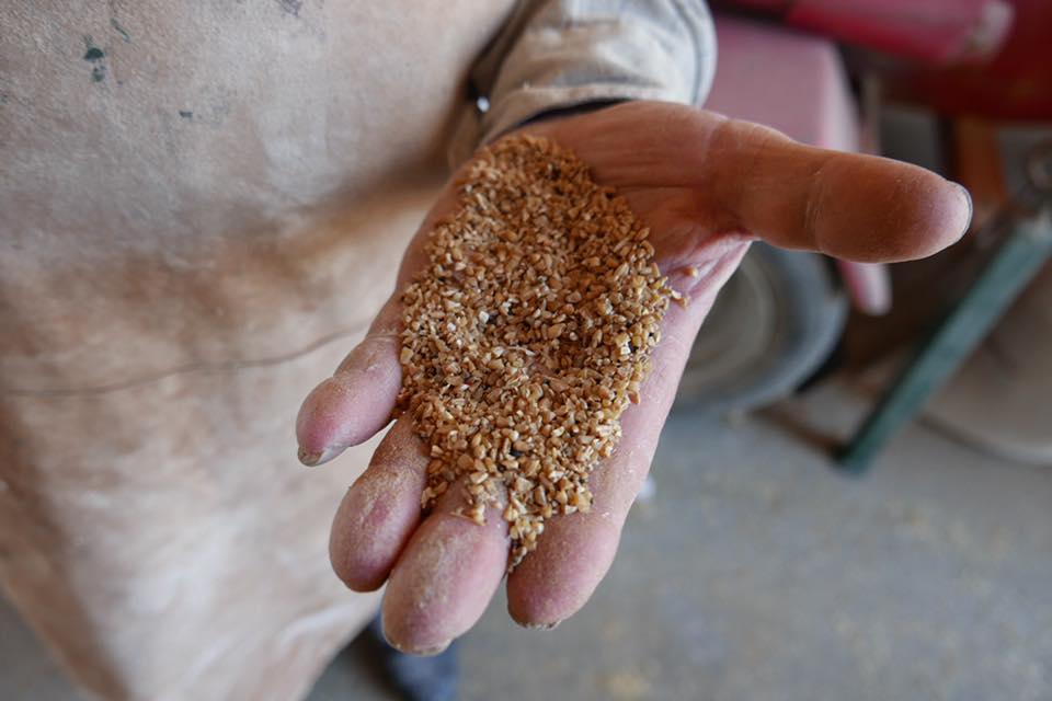 Τώρα ανάμεσα στα νέα μηχανήματα, ο κυρ Παναγιώτης διατηρεί (και λειτουργεί) και τον παλιό πετρόμυλο, ενώ «είμαι ειδικός και για να τα ξαναβρίσκω σε ζευγάρια που έχουν χωρίσει».